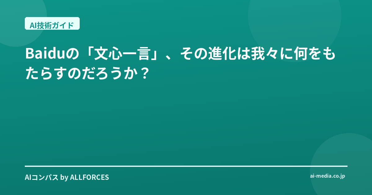Baiduの「文心一言」、その進化は我々に何をもたらすのだろうか? やあ、みんな。AI業界のベテランとして、この20年、文字通り数えきれないほどの技術の興亡を見てきた。シリコンバレーの黎明期のスタートアップが、夜な夜なコードと格闘しながら世界を変えようとしていた頃から、日本の大企業が、AIという言葉に期待と不安を抱きながら、その導入に頭を悩ませていた時代まで、本当に色々な光景を見てきたんだ。だから、Baiduが「文心一言」に新しい機能を続々と追加しているというニュースを聞いたとき、正直、まず「ほう、Baiduもついに本気を出してきたか