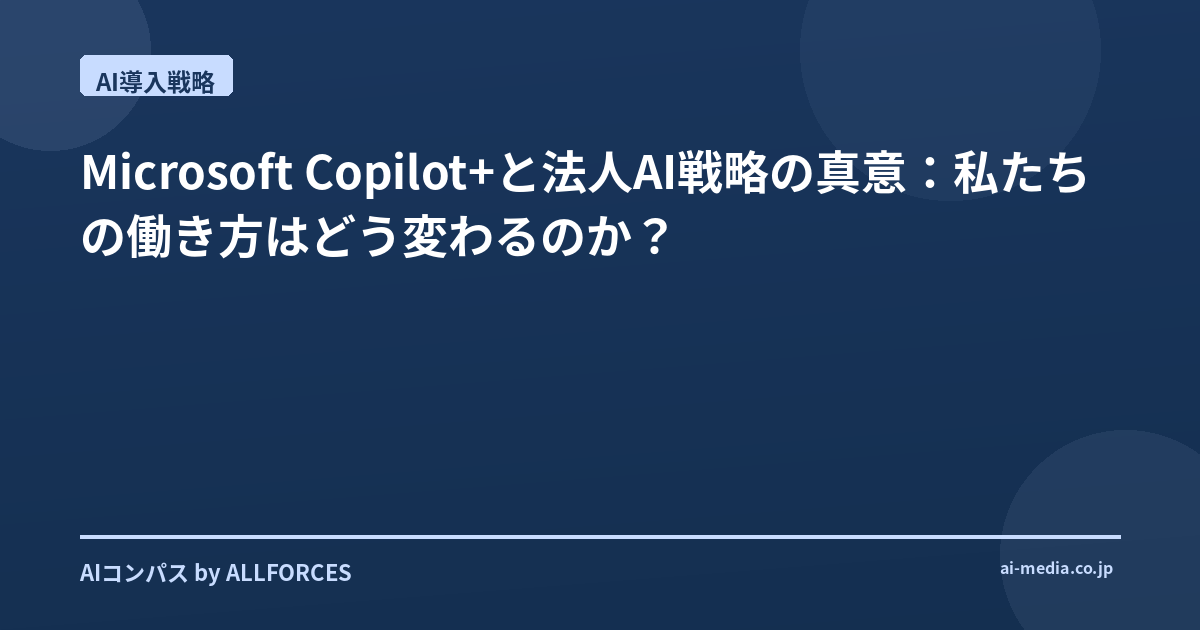 Microsoft Copilot+と法人AI戦略の真意:私たちの働き方はどう変わるのか?