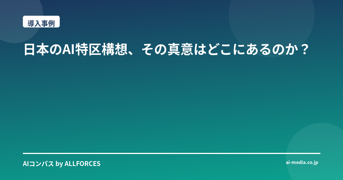 【既存の記事の最後の部分】 日本のAI特区構想、その真意はどこにあるのか? 「日本、AI特区で研究開発加速」――このニュースを聞いて、あなたも感じたかもしれませんが、正直なところ、僕が最初に抱いたのは「またか」という思いと、漠然とした期待が入り混じった複雑な感情でした。AI業界を20年近くウォッチし、シリコンバレーの熱狂的なスタートアップから、日本の大企業の重厚なDXプロジェクトまで、本当に多くのAI導入を間近で見てきたからこそ、この手の「国家戦略」という言葉には、一抹の懐疑心がどうしても付き纏うんです。 過去を振り返れば、「AI戦略2019」や「統合イノベーション戦略」など、政府がAIの重要性を認識し、様々な旗を振ってきたことは事実です。しかし、その多くが、構想としては素晴らしいものの、実行段階でのスピード感や、具体的な成果創出という点で、世界のトップランナーたちに水をあけられてきた印象は否めません。僕が関わってきた日本の多くのプロジェクトでも、PoC(概念実証)の段階で終わってしまったり、組織の壁や既存のレガシーシステムに阻まれて、本格的な社会実装に至らないケースを何度見てきたことか。だからこそ、今回のAI特区が、単なる「お題目」で終わらず、本当に日本のAI研究開発を加速させる「ゲームチェンジャー」となり得るのか、その真価が問われるのはまさにこれからだと考えています。 AI特区が目指すもの、そしてその本質とは? 今回のAI特区構想の核心は、やはり「規制緩和」と「集中的な資源投入」にあります。これまでのAI開発の足かせとなっていた、データ連携、個人情報保護、そしてドローンや自動運転といった分野での実証実験のハードルを下げる。これは非常に重要なポイントです。例えば、医療AIの分野では、匿名加工情報の利用拡大や、医療機関間でのデータ共有の円滑化が喫緊の課題でした。生成AIに関しても、著作権や倫理的な側面での利用ガイドラインが曖昧なために、企業が本格的な導入に踏み切れずにいるケースも少なくありません。特区が、これらの法的な障壁をクリアにし、明確な指針を示すことができれば、日本の得意分野である「現場での緻密な改善」とAI技術が融合し、一気にブレイクスルーが生まれる可能性は十分にあります。 しかし、規制緩和はあくまで入り口です。重要なのは、その後に続く「何ができるか」です。政府は、経済産業省や文部科学省を通じて、スパコン「富岳」のような強力な計算資源の提供、次世代AIチップ開発への投資、そしてAI人材の育成・誘致に重点的に予算を配分すると発表しています。これは、AI開発における「インフラ」と「人材」という、最も重要な2つの要素を強化しようという明確な意思表示だと評価できます。 現在、具体的な特区候補地としては、福岡のスタートアップエコシステム、茨城のつくば研究学園都市が持つ研究インフラ、北海道の広大な土地を活用した自動運転・ロボティクス実験などが挙がっています。それぞれの地域が持つ特性を活かし、特定の分野に特化した開発を進めるという戦略は理にかなっているでしょう。例えば、福岡ではPKSHA TechnologyのようなAIスタートアップが既に活躍しており、彼らが特区の恩恵を受け、さらに成長を加速させることを期待したいですね。また、東京大学や慶應義塾大学といった国内トップクラスの大学が、どのような形で研究参画し、人材育成のハブとなるのかも注目ポイントです。 期待と、それでも拭いきれない僕の懸念 もちろん、この構想には大きな期待を抱いています。日本の技術力は決して低くありません。NTTの独自LLM「tsuzumi」や、ソニーのAI倫理への取り組み、富士通やNECが長年培ってきたシステムインテグレーションの知見など、世界に誇れる技術的蓄積は豊富にあります。もし特区が、これらの日本の強