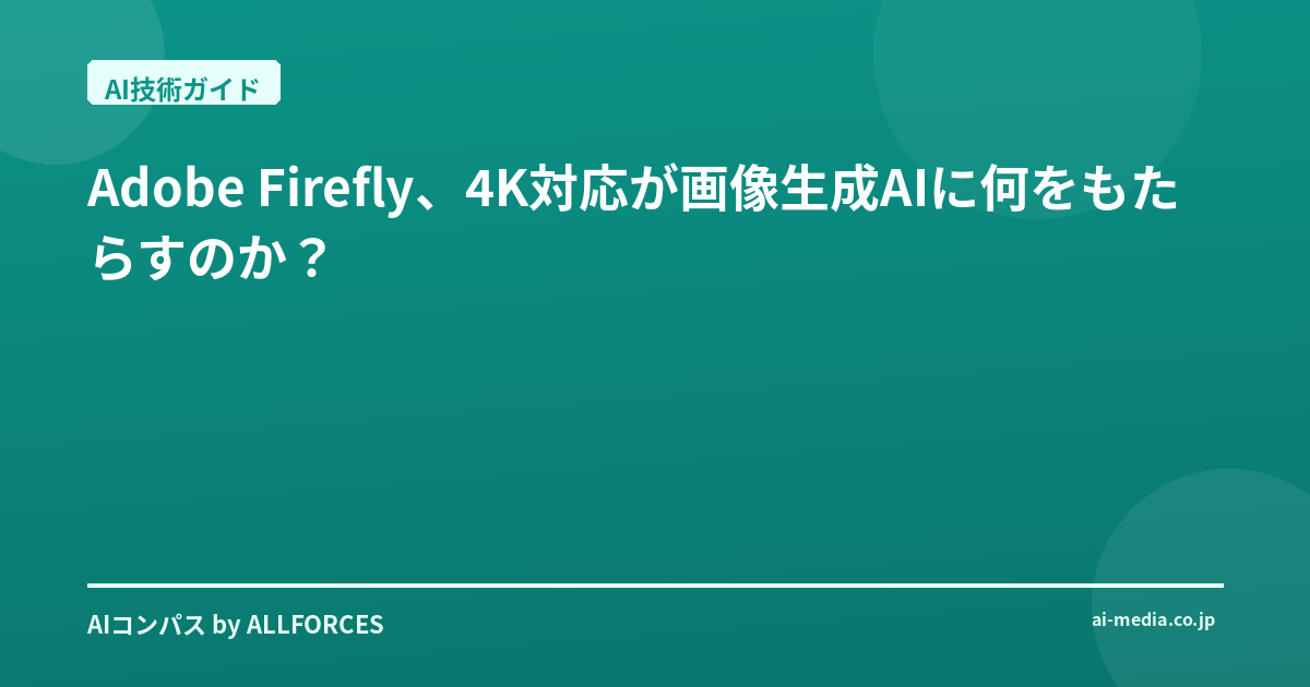 いやー、Adobe Fireflyが画像生成AIで4K出力に対応したっていうニュース、みんなも耳にしたかな?正直、最初は「ふーん、また1つ機能が追加されたか」くらいにしか思ってなかったんだ。だって、このAI業界、毎日のように新しい技術やサービスが出てきて、正直追いつくのが大変なんだよ。僕もこの世界を20年近く見てきたけど、それでも「なるほど、これは注目すべき変化だ」と感じる瞬間は、そう頻繁には訪れない。でも、今回のFireflyの4K対応は、ちょっとばかり僕のアンテナを強く揺さぶったんだ。