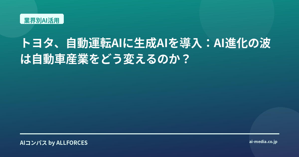 「トヨタが自動運転AIに生成AIを導入する」――最初にこのニュースを目にした時、正直なところ、私の中には「またか」という思いと、「いよいよ来たか」という期待が入り混じっていたのを覚えているよ。あなたも同じような感覚を覚えたかもしれないね。ここ20年、AI業界の変遷を間近で見てきた人間として、大手企業が新しい技術に飛びつく動向は数えきれないほど見てきたからね。しかし、トヨタが、しかも自動運転という安全性と信頼性が何よりも求められる領域で、生成AIという比較的新しい技術に本格的に舵を切るというのは、単なるトレンド追従では片付けられない、もっと深い意味があると感じているんだ。