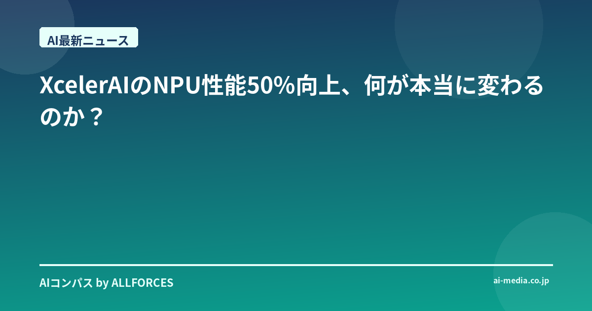 いやー、XcelerAIがNPUの性能を50%向上させたっていうニュース、目にしました? 率直に言って、最初の反応は「またか」でしたね。AIチップの分野は、もう毎日のように新しい発表があって、正直、どれもこれも「画期的」「次世代」なんて言われちゃうもんだから、ちょっと耳が肥えちゃってるというか、冷静になっちゃう部分があるんです。あなたもきっと、似たような感覚を抱いているかもしれませんね。