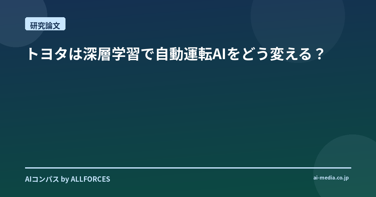 いやー、トヨタが自動運転AIに深層学習を本格導入、なんてニュースを聞くと、なんだか感慨深いものがありますね。AI業界を20年も見てきた身としては、この動き、正直「ついに来たか」という気持ちと、「でも、これからが本番だな」という両方の思いが湧いてきます。あなたも、こういった大企業のAIへの取り組みには、いつも注目しているんじゃないでしょうか?