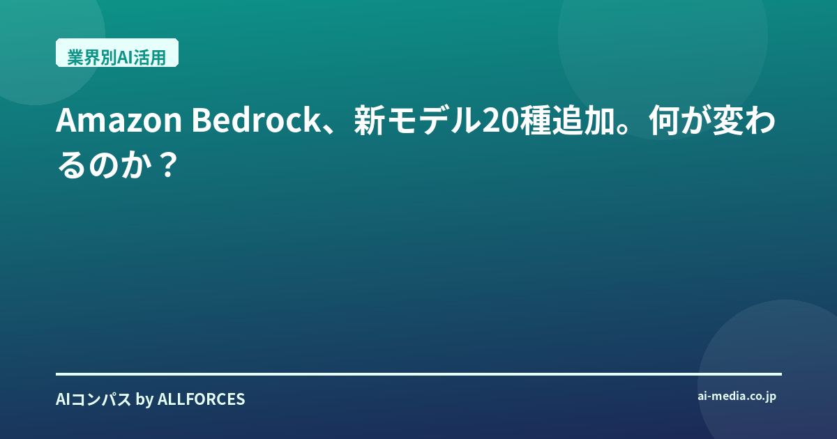 Amazon Bedrock、新モデル20種追加。何が変わるのか?