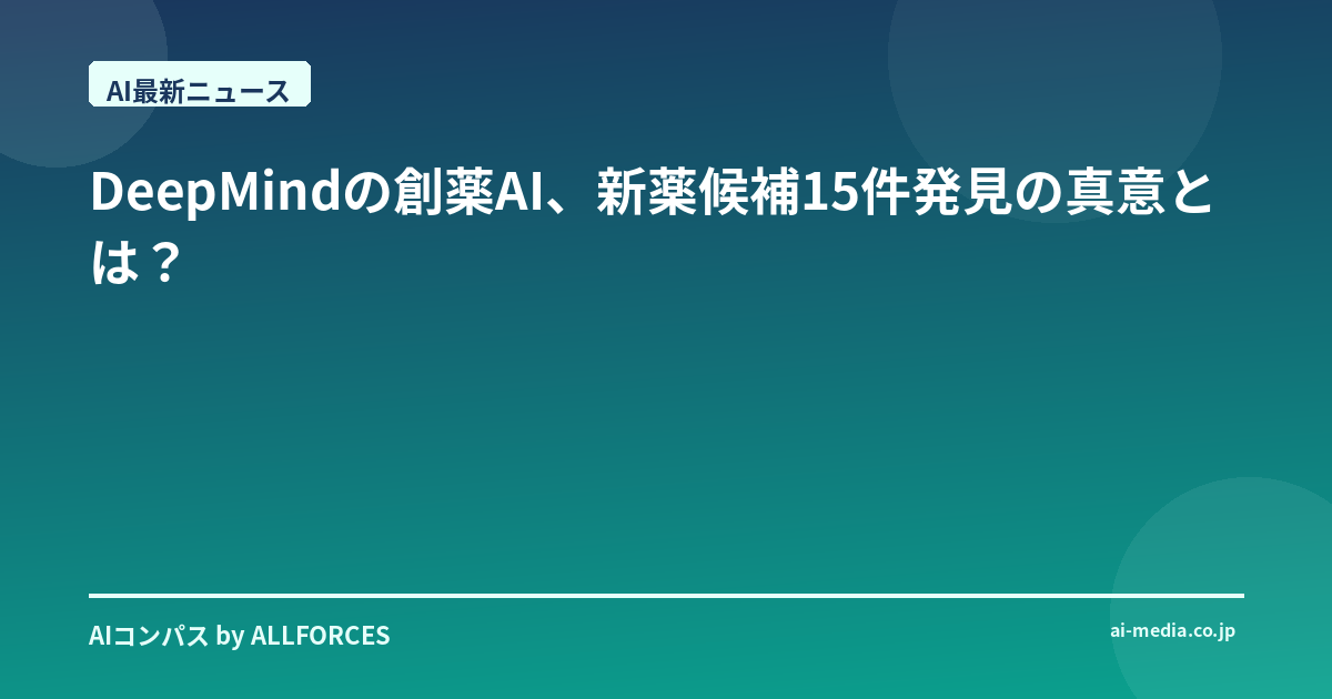 いやー、このニュース、皆さんもうチェックしましたか?DeepMindが創薬AIを使って、なんと15件もの新薬候補を発見したという話。AI業界を20年近く見てきた身としては、思わず「お、来たか!」と声を上げてしまいましたよ。過去にもAIによる創薬のニュースは耳にしてきましたが、今回のDeepMindの成果は、その「質」と「量」が違う気がするんです。