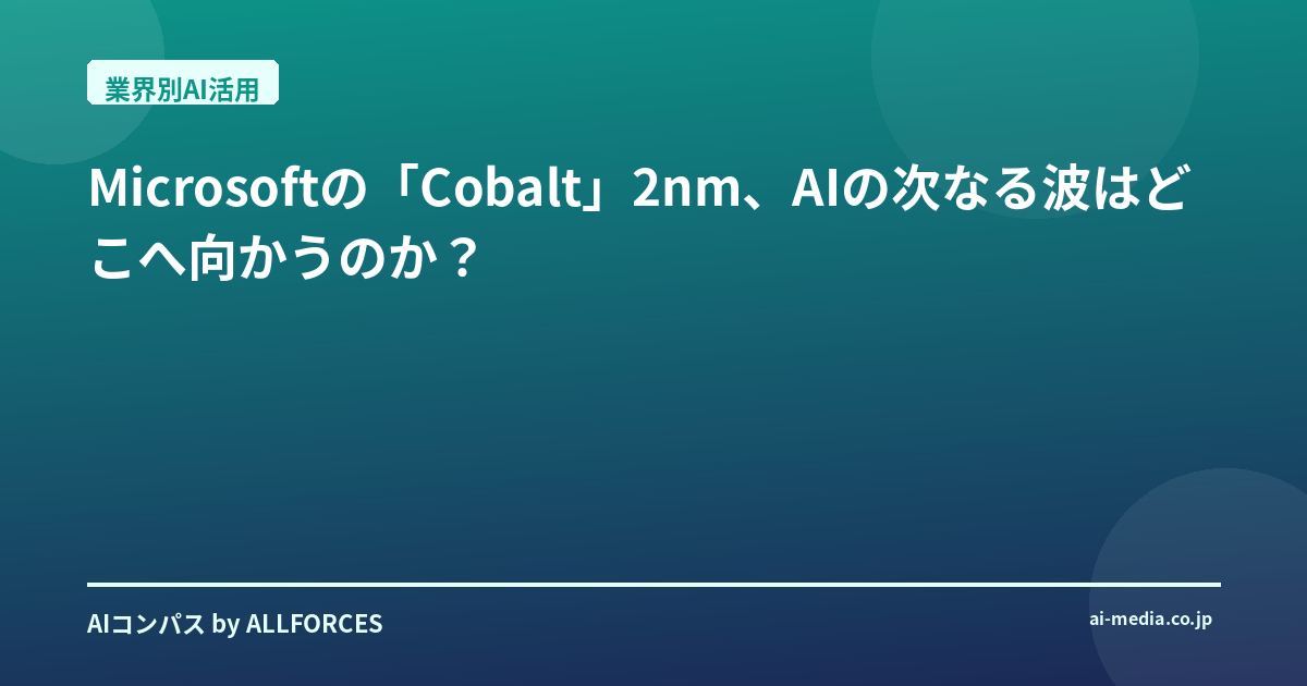 Microsoftの「Cobalt」2nm、AIの次なる波はどこへ向かうのか?
