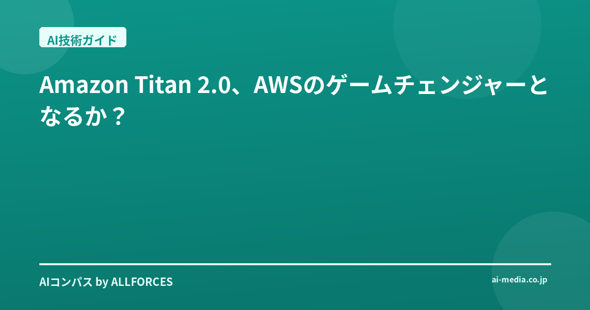 どうも皆さん、AI業界を長年ウォッチしてきたアナリストです。シリコンバレーのスタートアップから日本の大企業まで、文字通り数百社のAI導入の現場を見てきました。正直、最近のAIの進化のスピードには、自分でも驚かされるばかりです。そんな中、AmazonがAWS向けに「Titan 2.0」という大規模言語モデル(LLM)を公開したというニュース、皆さんも耳にされたのではないでしょうか?
