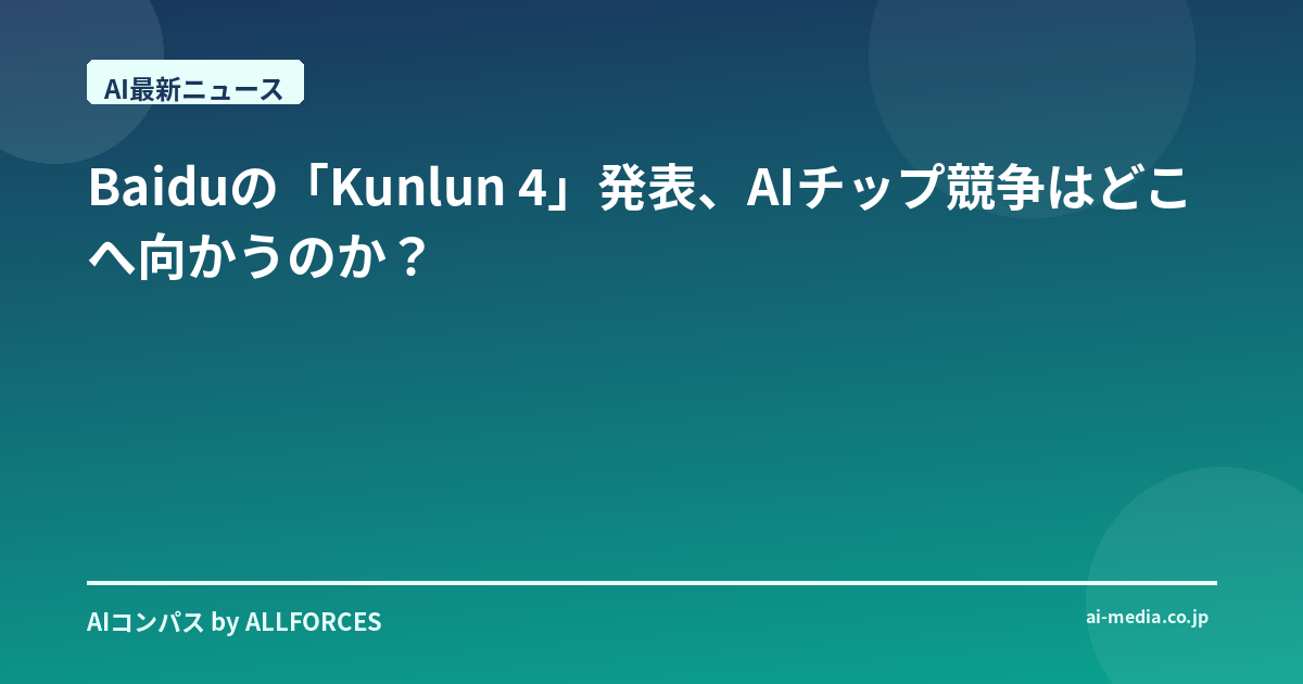 Baiduの「Kunlun 4」発表、AIチップ競争はどこへ向かうのか? いやー、ついに来ましたね、Baiduの「Kunlun 4」。AIチップのニュースを聞くと、つい20年前のまだ黎明期だった頃を思い出してしまいます。あの頃は、AIなんてSFの世界の話だと思っていた人も多かった。それが今や、私たちの生活のあらゆる部分に浸透し、ビジネスのあり方を根底から変えようとしている。私も、シリコンバレーの小さなスタートアップが次々と画期的なアイデアを生み出すのを目の当たりにしてきましたし、日本の大企業がAI導入に苦心する様子も見てきました。だからこそ、こういうニュースには、どうしても少しばかり肩入れしてしまうんですよね。 今回のBaiduの発表、率直に言って「すごいな」と思うと同時に、「これで本当に変わるのか?」という冷静な目も同時に働いています。だって、AIチップの世界って、本当に目まぐるしいんです。NVIDIAのGPUが不動の地位を築いているように見えても、GoogleのTPUや、AmazonのInferentia、そしてMicrosoftの Maia など、次々と新しいプレイヤーや技術が登場しては、市場の勢力図を塗り替えようとしている。そんな中で、Baiduが「Kunlun 4」でどこまで食い込めるのか、正直、まだ懐疑的な部分もあります。 BaiduがAIチップ開発に力を入れているのは、もはや周知の事実ですよね。彼らは、自社の検索エンジンやクラウドサービスはもちろん、自動運転技術「Apollo」など、多岐にわたるAIサービスを開発・提供しています。こうしたサービスを支えるには、高性能かつコスト効率の良いAIチップが不可欠なんです。過去にも「Kunlun」シリーズは発表されてきましたが、今回の「Kunlun 4」は、それらの経験を活かした、まさに集大成とも言える製品だと期待されています。 Web検索で集めた情報によると、「Kunlun 4」は、前世代から大幅に性能が向上し、特に大規模言語モデル(LLM)のような、より複雑なAIタスクの処理に最適化されているようです。さらに、製造プロセスやアーキテクチャの改良により、電力効率も改善されていると聞きます。これは、AIの利用が拡大するにつれて