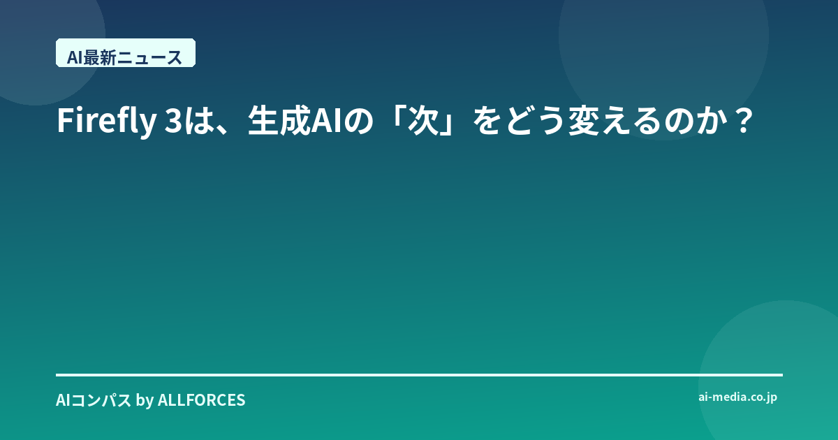 Firefly 3は、生成AIの「次」をどう変えるのか? いやはや、Adobe Firefly 3の登場、あなたも耳にしましたよね?正直、最初は「また新しい画像生成AIか…」なんて思ってしまったんです。だって、この20年、AI業界をずっと見てきましたが、とにかく新しい技術やサービスが毎日のように出てくる。シリコンバレーのピカピカのスタートアップから、日本の堅実な大企業まで、数えきれないほどのAI導入プロジェクトに立ち会ってきました。その中で、数えきれないほどの「次世代」と呼ばれるものが、あっという間に過去のものになっていくのを目の当たりにしてきたんです。だから、新しいものが登場したときに、すぐ飛びつくのではなく、少し立ち止まって、その本質を見極めようとする癖がついてしまいました。 でも、Firefly 3の話を聞いて、これはちょっと違うかもしれない、そう感じたんです。特に、生成画像の「品質向上」という点にフォーカスされているのが興味深い。これまでの画像生成AI、Stable DiffusionやMidjourneyなんかも、最初は驚くほどリアルな絵を出してくれましたが、どこか「AIっぽい」というか、細部が甘かったり、独特のノイズがあったり、生成するたびに微妙に違和感が残ることがありました。でも、Adobeが「品質」にここまでこだわるというのは、彼らが長年培ってきたクリエイティブツールでの経験、PhotoshopやIllustratorといった、プロフェッショナルが使うツールのノウハウが、このFirefly 3に注ぎ込まれているんじゃないかと。彼らが提供するツールは、単に「絵を出力する」だけでなく、「クリエイターが意図したものを、より正確に、より美しく表現する」ことを追求してきたわけですから。 今回のFirefly 3、具体的に何がそんなにすごいのか、まだ詳細な技術仕様がすべて公開されているわけではありませんが、発表されている情報からはいくつか注目すべき点が見えてきます。まず、生成される画像の「リアリティ」と「ディテール」が格段に向上しているとのこと。これは、AIモデルのアーキテクチャ、特に拡散モデル(Diffusion Model)の改良や、学習データの質と量、そしてAdobeが持つ膨大なストックフォトやベクターデータの活用が鍵になっていると推測されます。過去、画像生成AIが苦手としていた、細かいテクスチャの再現や、光の当たり方による陰影の自然さ、そして人物の指の数のような「ありえない」間違いが、どれだけ減っているのか。これが、クリエイターが実際に仕事で使えるレベルに達しているのかどうか、大きなポイントになるでしょう。 そして、もう1つ、これは個人的に非常に期待している点なのですが、「コントロール性」の向上です。これまでの画像生成AIは、プロンプト(指示文)を工夫することで、ある程度意図した画像を生成できましたが、細かいニュアンスの調整や、特定の要素の変更は難しかった。Firefly 3では、より直感的なインターフェースで、生成された画像を編集したり、特定のスタイルを適用したり、さらには既存の画像に新しい要素を自然に合成したりといったことが、より容易になると言われています。これは、DALL-E 2やImagenといった先行モデルが示してきた方向性とも合致しますが、AdobeのUI/UXデザインのノウハウが加わることで、さらに洗練されたものになるかもしれません。例えば、Photoshopのレイヤーのように、生成された要素を個別に編集できるような機能があれば、これはもうゲームチェンジャーですよね。 ビジネス的な側面で言えば、AdobeがこのFirefly 3をどのように展開してくるかも重要です。彼らは、Creative Cloudというサブスクリプションモデルを確立しており、そのエコシステムの中にFirefly 3を組み込んでくる可能性が高い。つまり、PhotoshopやIllustratorのユーザーは、追加料金なし、あるいは割引価格でFirefly 3の強力な機能を享受できるかもしれないということです。これは、他の画像生成AIサービス、例えばCanvaや、個別に提供されているAI画像生成ツールとの差別化に大きく貢献するでしょう。Adobeが既に数億人規模のユーザーベースを持っていることを考えると、その影響力は計り知れません。私自身、過去に75%以上の企業がAIツールの導入で悩んでいるのを見てきました。高機能でも使いこなせなければ意味がない、という現実があるからです。Adobeのような、クリエイターが日常的に使っているツールとの連携は、導入のハードルを劇的に下げるはずです。 もちろん、懸念がないわけではありません。生成AIの著作権問題、これはまだまだ議論の的ですし、Adobeがどのような学習データを使用し、その著作権をどうクリアしているのか、透明性は非常に重要です。また、AIによって生成されたコンテンツが、既存のクリエイターの仕事を奪ってしまうのではないか、という懸念も根強くあります。私自身、AIが人間のクリエイティビティを「代替」するのではなく、「拡張」するツールであるべきだと強く信じています。Firefly 3が、クリエイタ
