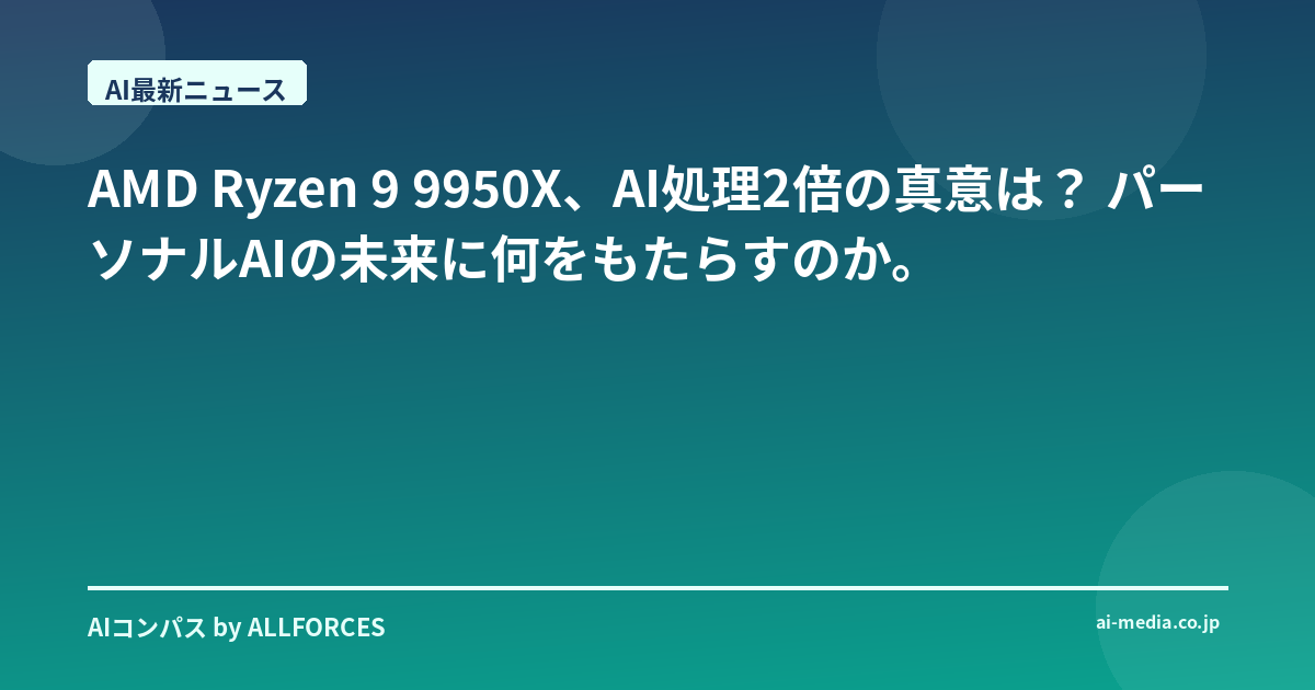 おいおい、またAMDがやってくれたな! 君も「AMD Ryzen 9 9950X、AI処理速度2倍に」って見出しを見て、正直なところ「ほう、また威勢のいい数字を出してきたな」って思ったんじゃないかな? 私もこの業界で20年近く飯を食ってる身としては、最初は少し斜に構えてしまうんだよ。でもね、今回ばかりは単なる数字の羅列で片付けられない、もっと深い意味が込められている気がしてならないんだ。