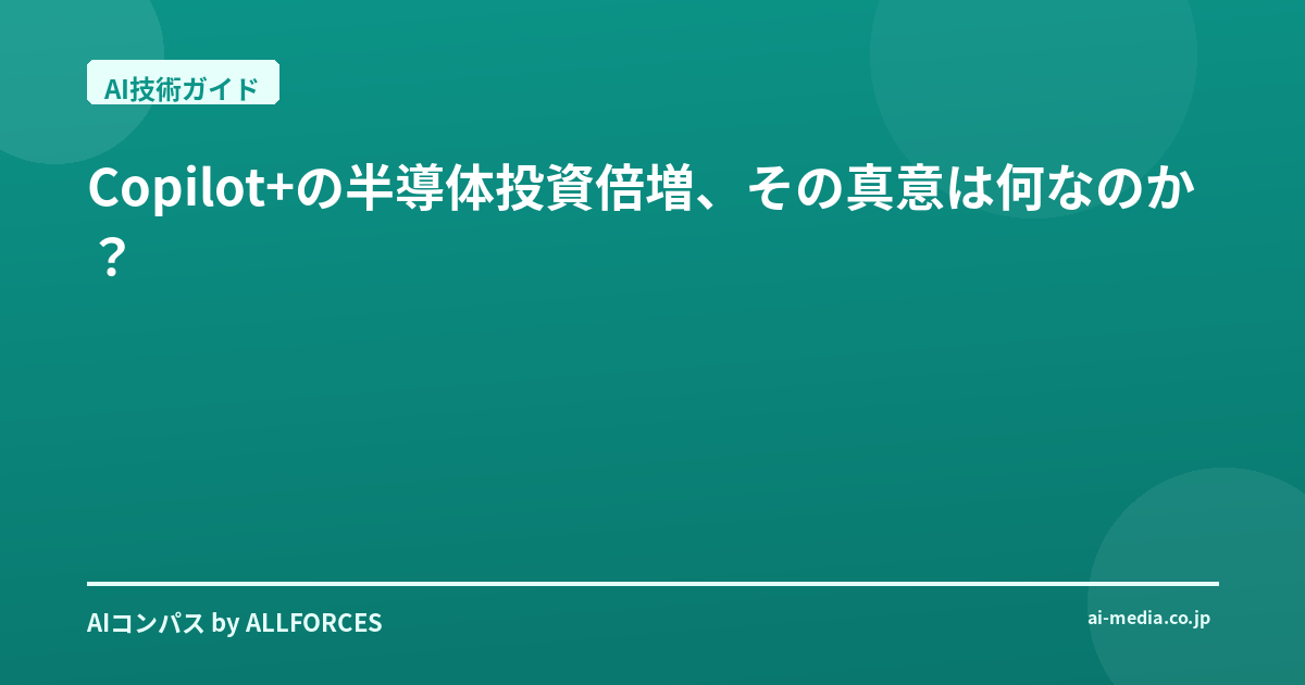 Copilot+の半導体投資倍増、その真意は何なのか?