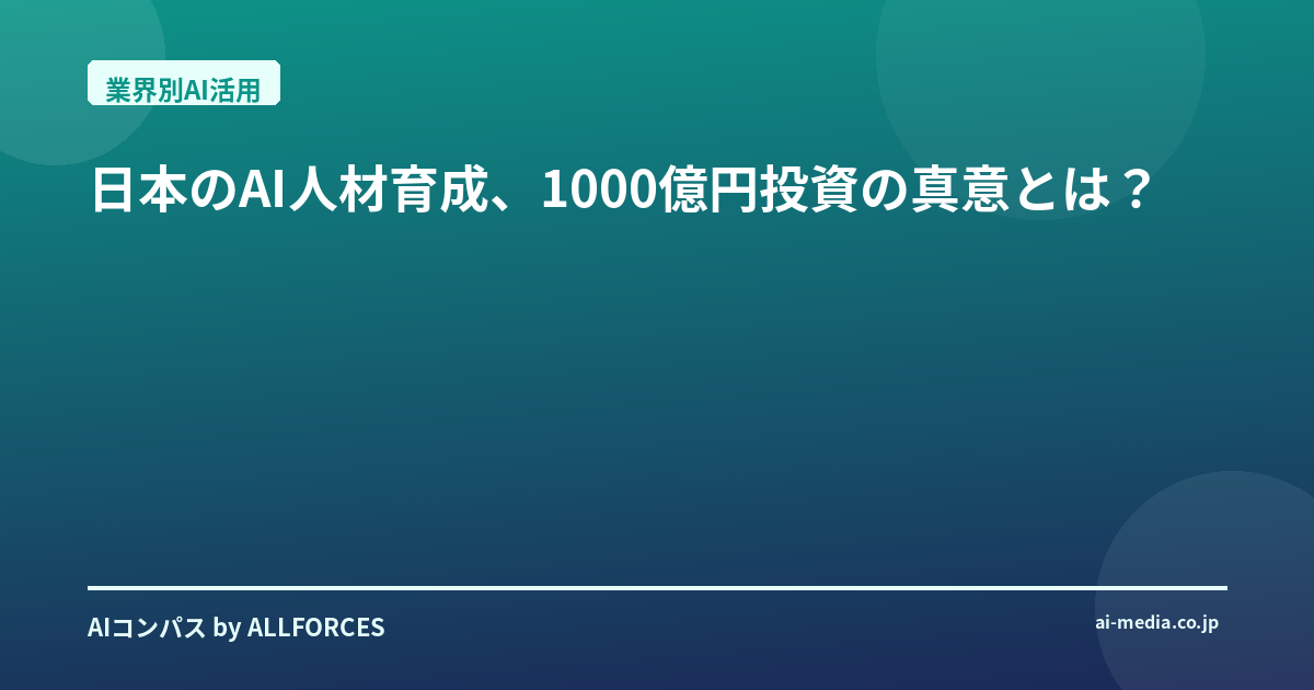 日本のAI人材育成、1000億円投資の真意とは? いやー、つい先日、日本政府がAI人材育成に1000億円規模の投資を行うというニュースが飛び込んできて、思わず二度見しちゃいましたよ。AI業界を20年近く追いかけていると、こういう大きな動きにはどうしても敏感になっちゃうんですよね。シリコンバレーのピカピカのスタートアップから、日本の歴史ある大企業まで、数えきれないほどのAI導入プロジェクトを間近で見てきましたから。正直、最初は「またか…」って少し懐疑的な気持ちもありました。だって、AI人材育成って、これまでも何度か大きなテーマとして語られてきたじゃないですか。でも、今回の1000億円っていう数字は、さすがに無視できない。これは、単なる掛け声ではない、本気度を感じさせる規模感ですよね。 私自身、AIの進化をずっと見てきて、その可能性と同時に、人材不足というボトルネックも痛感してきました。AI技術そのものは目覚ましいスピードで進歩しています。ディープラーニングの登場から、生成AIの隆盛まで、まさに目まぐるしい。でも、どんなに優れた技術も、それを使いこなす、あるいはさらに発展させる人間がいなければ、絵に描いた餅になってしまう。過去には、ある日本の製造業のトップ企業が、最先端のAI開発に巨額を投じましたが、社内にそれを実装できるエンジニアが不足していて、結局プロジェクトが頓挫してしまったという話も聞きました。これは、決して珍しい話ではないんです。技術の導入コストよりも、それを運用・開発できる人材の獲得と育成の方が、ずっとハードルが高い。だから、今回の1000億円という投資は、そういう根本的な課題に、ようやく国が本腰を入れて向き合おうとしている、そういうサインだと受け止めています。 さて、この1000億円という投資、具体的に何に使われるのか、そしてそれが私たちのAI業界、いや、日本全体にどういう影響を与えるのか、これはじっくり考えてみる価値があります。報道によると、この投資は、大学や研究機関でのAI関連研究の強化、そして企業におけるDX(デジタルトランスフォーメーション)推進のためのAI人材育成プログラムの拡充に充てられるとのこと。特に注目したいのは、高度AI人材の育成と、AIをビジネス現場で活用できる人材の裾野を広げるという2つの側面です。 まず、高度AI人材の育成。これは、AIの基礎研究を担う研究者や、最先端のAIモデルを開発できるエンジニアを育てるということですよね。例えば、近年注目されている大規模言語モデル(LLM)のような、複雑で計算資源を大量に必要とする技術を開発するには、世界トップレベルの研究開発力が必要です。GoogleのDeepMindやOpenAIのような、先駆的な研究開発組織が次々と登場する中で、日本もこの分野で存在感を示すためには、優秀な人材の輩出が不可欠です。この投資によって、大学でのAI研究室への支援が強化され、より多くの学生が最先端の研究に触れる機会が増えることを期待しています。また、国内外のトップレベルの研究者を招聘したり、共同研究を推進したりする動きも加速するかもしれません。例えば、国際的なAIカンファレンスであるNeurIPSやICMLなどで、日本の研究者がより大きな成果を発表できるようになる、そんな未来が見えてきます。 一方で、私が個人的に非常に重要だと感じているのは、AIをビジネス現場で活用できる人材の育成、つまり「AIリテラシー」の底上げです。これは、AIエンジニアのような専門家だけでなく、企画担当者、営業担当者、さらには現場のオペレーターまで、あらゆる職種の人々がAIの可能性を理解し、自らの業務にどう活かせるかを考えられるようになることを意味します。例えば、Microsoft CopilotのようなAIアシスタントツールが、ビジネスパーソンの日常業務をどれだけ効率化できるか。これは、ツールの導入だけでなく、それを使いこなすための「使い方」を理解し、自分で工夫できる人材がいるかどうかにかかっています。今回の投資が、企業向けのAI研修プログラムの拡充や、リスキリング(学び直し)の機会提供にも繋がるのであれば、それは日本経済全体の生産性向上に大きく貢献するはずです。例えば、中小企業でもAIを活用できるようになれば、これまでIT化が遅れていた分野でも劇的な変化が起きるかもしれません。 しかし、ここでいくつか疑問符も浮かびます。1000億円という規模は大きいですが、AI人材育成という壮大なテーマに対して、これが十分なのかどうか。そして、育成された人材が、日本国内で、そして日本企業で、どのように活躍できる環境が作られるのか。これが一番の懸念材料かもしれません。シリコンバレーでは、優秀なAI人材は常に引く手あまたで、スタートアップからGAFAM(Google, Apple, Facebook, Amazon, Microsoft)といった巨大テック企業まで、彼らを惹きつけるための競争が激しい。高額な報酬はもちろん、最先端の研究開発に携われる機会、そして柔軟な働き方など、
