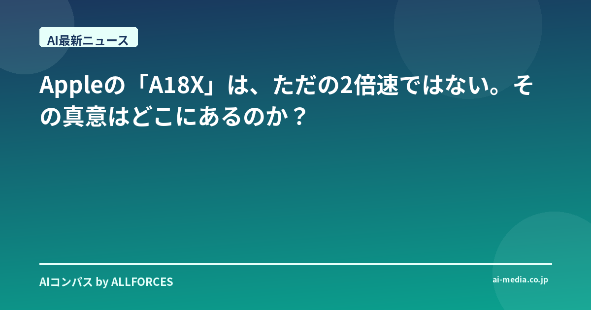 Appleの「A18X」は、ただの2倍速ではない。その真意はどこにあるのか? 正直なところ、最初に「Apple、AIチップ『A18X』投入、生成AI処理速度2倍」というニュースを見たとき、私は少し斜に構えてしまったんだ。また「〇〇が2倍!」という、マーケティング的な謳い文句かな、とね。だって、この業界を20年も見ていれば、そういう派手な数字の裏に、ちょっとしたトリックが隠されていることなんてザラにあるからね。でも、Appleが本気で「X」の冠をつけたAIチップを投入するという話には、ただ事ではない何かを感じたんだ。あなたも、そう感じませんでしたか? 私がまだ