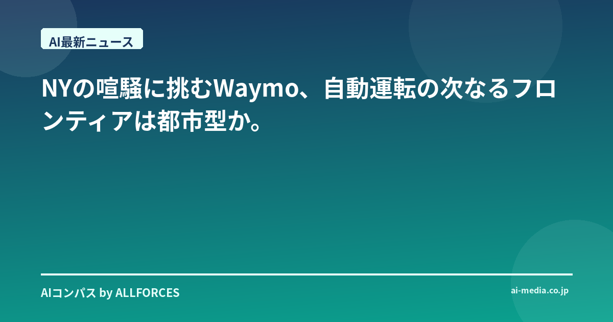 あのNYに、自動運転が挑む真の意味 私がこのAI業界を20年近く見てきた中で、自動運転技術ほど浮き沈みの激しい分野はなかったかもしれない。初期のDARPA Grand Challengeの頃は、まるでSFの世界の話だと思っていたものが、あっという間に現実味を帯び、そしてまた、その実現の難しさに直面する。この道のりは決して平坦じゃなかった。Waymo、というか元を辿ればGoogleの自動運転プロジェクトが始まった頃から、彼らは「Level 4(特定条件下での完全自動運転)」の実現に焦点を当ててきた。フェニックスのような比較的交通量の少ない、気候も安定した場所からスタートし、徐々にサンフランシスコやロサンゼルス、そして最近ではテキサス州オースティン、フロリダ州マイアミへとサービスエリアを拡大してきたわけだけど、ニューヨークはこれまでのどの都市とも次元が違うんだ。 なぜNYがそこまで特別なのか、あなたも想像できるかもしれないね。まず、圧倒的な交通量。そして、車、タクシー、バス、歩行者、自転車、電動スクーター、さらには二重駐車の車や突如現れる配達員まで、あらゆる移動手段が混沌と入り混じる。それに、予測不能な人の動き、そして極め付きは、雪や雨、凍結といった悪天候への対応だ。これらの要素全てが、自動運転システム「Waymo Driver」にとっての究極の試練となる。これまで培ってきたLiDAR、レーダー、カメラ、そして超音波センサーから得られる膨大なデータをリアルタイムで解析し、「Sensor Fusion(センサー融合)」によって周囲の環境を360度正確に把握する能力が、まさに問われることになる。 技術の核心と、その裏にある現実 Waymoの技術力は疑う余地がない。彼らは長年にわたって、何億マイルもの実走行データと、その何倍ものシミュレーションデータを積み重ねてきた。彼らの「Waymo Driver」は、高度な機械学習モデルと予測アルゴリズムによって、周囲の車両や歩行者の意図を読み解き、安全な走行経路を判断する。例えば、フェニックスではもう何年も前から、誰も乗っていない完全無人のロボタクシー「Waymo One」がサービスを提供しているし、サンフランシスコでも同様の展開をしている。これはTeslaのFSD(Full Self-Driving)が、あくまでドライバーが監視する「Level 2」の運転支援システムであるのに対し、Waymoは特定の条件下では完全にシステムが運転を担う「Level 4」を目指している点で、アプローチが根本的に異なるんだ。 しかし、そのWaymoでさえ、NYでの展開は「限定的」なものから始まる。最初はWaymoの従業員を乗せた車両が、マンハッタンの一部地域で運行を開始するという。これは、単に技術的な準備が万全ではないというよりは、ニューヨーク特有の環境データを収集し、システムをさらに最適化するためのフェーズだと見るべきだろう。それに、ニューヨーク州車両管理局(NY DMV)や連邦道路交通安全局(NHTSA)といった規制当局との密な連携、そして万が一の事故に対する保険や責任の問題も、この「限定開始」の裏には大きく横たわっているはずだ。 私がこの業界を見ていていつも思うのは、技術は最終的に「社会に受け入れられるか」という壁にぶち当たるということだ。Cruiseがサンフランシスコで経験した、数々の運行停止や免許剥奪の動きは記憶に新しい。彼らの車両が緊急車両の通行を妨げたり、軽微な事故を起こしたりするたびに、市民の自動運転への信頼は揺らいでしまう。Waymoもそうした前例を踏まえ、NYではより慎重なアプローチを取らざるを得ない。だからこそ、最初は安全ドライバーが同乗し、万が一の事態に備えながら、膨大な「エッジケース(稀な事象)」データを集めていく。この都市の複雑さが、自動運転AIの「知能」を次のレベルへと押し上げるための、まさに最高の訓練場になるんだ。 投資家と技術者が今、考えるべきこと さて、このWaymoのNY進出を、投資家や技術者はどう捉えるべきだろうか。 投資家として見るならば、 これは自動運転市場、特に「MaaS(Mobility as a Service)」としてのロボタクシー市場の潜在的な巨大さを改めて認識させる動きだと言える。ニューヨークという巨大な都市で成功すれば、その収益ポテンシャルは計り知れない。ただし、短期的なリターンを期待するのはまだ早い。WaymoはAlphabet(Googleの親会社)という巨大なキャッシュフローを持つ企業の傘下にあるからこそ、これまでの莫大な研究開発費を投じることができた。スタートアップではなかなか真似できない規模だ。だから、投資家としては、彼らの技術的優位性がどれだけ「スケーラブル(拡張可能)」であり、どれだけ早く収益化の道筋が見えてくるのか、長期的な視点で冷静に見極める必要がある。センサーメーカーや高精度地図ベンダー、あるいはAIチップの開発企業など、自動運転エコシステム全体に目を向けるのも賢明な戦略だろうね。例えば、NVIDIAのようなAIチップ企業は、自動運転車両の「Edge Computing」能力を支える重要な存在だ。 そして、技術者としてこの