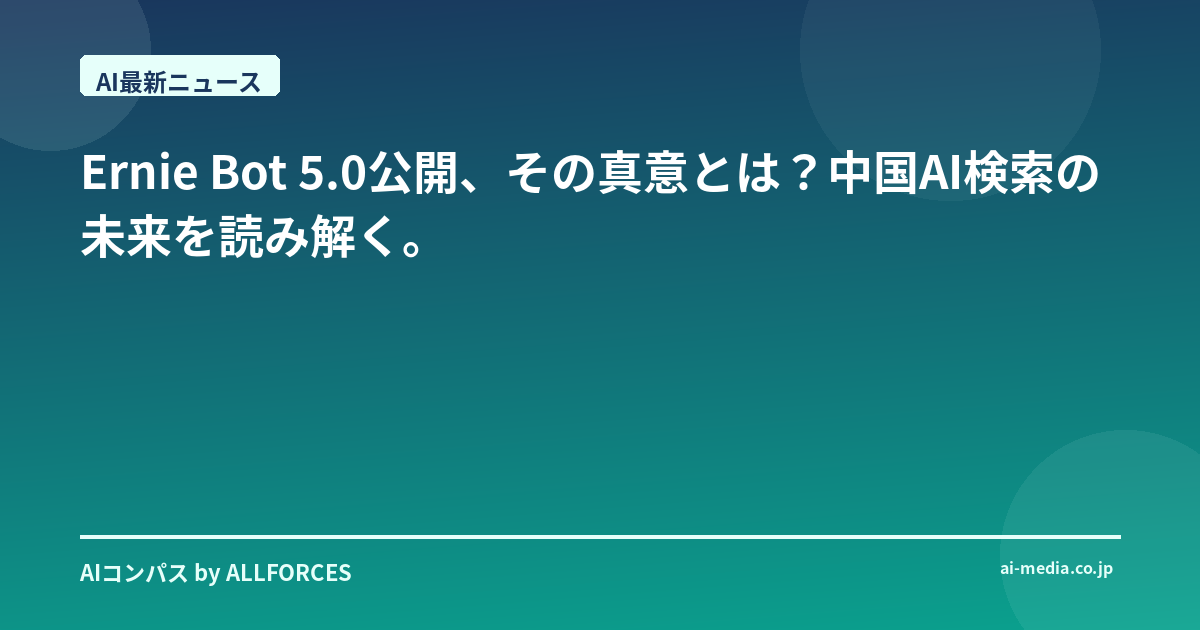 Ernie Bot 5.0公開、その真意とは?中国AI検索の未来を読み解く。 正直なところ、あなたも感じているかもしれませんが、中国Baiduが最新のAI検索エンジン「Ernie Bot 5.0」を公開したというニュースを聞いた時、私の最初の反応は「またか」というものだったんだ。でもね、AI業界を20年近くウォッチし、シリコンバレーから東京まで数百社のAI導入を間近で見てきた経験から言うと、この「またか」の中には、見過ごせない深い意味が隠されていることが多いんだよ。単なるバージョンアップに見えても、その裏には壮大な戦略と、時には未来を変える可能性が秘められている。 覚えているかな?2000年代初頭、Googleが検索市場を席巻した時、「検索はもうGoogleで終わりだ」と多くの人が語ったものだよ。当時の私も、正直なところそう思っていたフシがある。キーワードを入れて、関連性の高いウェブサイトが並ぶ。それが検索の完成形だと。でも、AIの進化は、その定説を根底から覆しつつある。もはや検索は、ただ情報を羅列するだけじゃない。ユーザーの意図を深く理解し、その場で答えを生成し、さらには創造的なタスクまでこなす、そんな時代が来ている。そして、中国のBaiduは、この新しい時代の検索を、自らの手で定義しようと必死になっているんだ。彼らの動向は、単に中国国内の競争だけでなく、世界のAIトレンドを読み解く上でも、非常に重要なパベンチマークになる。 では、今回のErnie Bot 5.0、具体的に何がすごいのか、そしてその裏にあるBaiduの戦略を深掘りしてみよう。 まず技術的な側面から見ていこうか。Ernie Bot 5.0は、Baiduが長年培ってきた大規模言語モデル「Wenxin Yiyan (文心一言)」シリーズの最新進化形だ。この「Ernie」という名前は、「Enhanced Representation through kNowledge IntEgration」の略で、彼らが知識統合と意味理解にどれだけ力を入れてきたかを示すものなんだ。過去のバージョンも注目されてきたけれど、今回の5.0では、特にマルチモーダル対応能力の300%の向上が注目されている。つまり、テキストだけでなく、画像、動画、音声といった多様な形式の情報を理解し、それらを組み合わせて複雑なクエリに応答できるようになったということだ。 これはね、ChatGPTやGoogleのGeminiといった世界のトップランナーたちとの競争において、極めて重要な要素なんだ。例えば、「この写真の料理のレシピを教えて、さらにそれに合うワインを提案して、そのワインの産地の歴史も教えて」といった、複数の情報源と異なるタスクを組み合わせたような複雑な質問にも、Ernie Bot 5.0はより自然に、そしてより正確に答えられるようになっているとBaiduは主張している。彼らの発表によれば、推論能力と生成能力がさらに強化され、従来では難しかったような高度なクリエイティブタスク、例えば詩の作成からプログラミングコードの生成、さらには長編のビジネスレポートの骨子作成まで、幅広い領域でその実力を発揮できるらしい。 正直なところ、私もこの手の「何でもできる」という謳い文句には、最初は懐疑的になることが多いんだ。だって、完璧なAIなんて、まだ夢物語だからね。でも、Baiduがこうした高度な機能を前面に押し出すということは、彼らが自社の技術に相当な自信を持っている証拠だ。特に、Baiduが長年蓄積してきた膨大な中国語のデータと、彼らの得意とするナレッジグラフ技術との連携は、他社の追随を許さない強みになる可能性がある。中国特有の文化やニュアンスを理解し、その上で精度の高い情報を提供できるのは、やはり現地企業のアドバンテージだからね。私が以前、日系企業が中国市場向けにローカライズされたAIを開発しようとした際、言語や文化の壁がいかに厚いかを痛感した経験があるから、この点は特に強調しておきたい。 ビジネス戦略の観点から見ると、Ernie Bot 5.0はBaiduの広範なエコシステム戦略の中核を担う存在だ。彼らは単に検索エンジンを強化するだけでなく、この強力なAI技術を自社の他のサービスへと波及させようとしている。例えば、自動運転プラットフォーム「Apollo」やスマートホームデバイス「Xiaodu」といった領域への応用は、AIが単なる情報処理ツールではなく、私たちの生活に深く入り込むインターフェースへと進化していることを示している。 また、Baiduは「飛槳 (PaddlePaddle)」というオープンソースのAI開発プラットフォームを擁しており、さらにその上で「Qianfan (千帆)」というモデルプラットフォームを通じて、企業向けにErnie Botの能力を提供している。これはね、彼らが自社の技術を囲い込むだけでなく、広く産業全体に普及させ、自らの影響力と市場シェアを拡大しようとしている明確な意思表示なんだ。つまり、BaiduはGoogleのような検索巨人でありながら、Amazon Web Services (AWS) やMicrosoft AzureのようなクラウドAIプロバイダーとしての役割も同時に担おうとしている。中国国内の厳しい競争環境、例えばテンセントやアリババといった巨大テック企業との