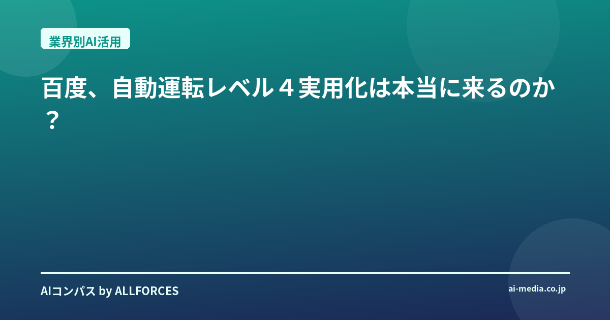 私がこれまでに見てきたAI導入の現場でも、特に物流や公共交通の分野では、自動運転技術への期待がものすごく高かった。でも、技術的なハードルだけでなく、法整備や社会的な受容性といった課題も山積みで、なかなか実用化にこぎつけなかったんだ。だから、百度のような巨大企業が、このレベル4に本腰を入れてきたというのは、単なる実験段階を超え、ビジネスとしての成立を目指している、と捉えるべきだろうね。