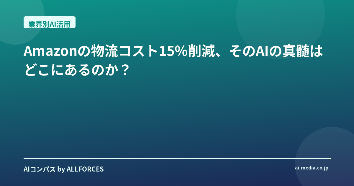 「AmazonがAIで物流コストを15%削減」──このニュースを聞いて、あなたも僕と同じように「またAmazonか」と、少しばかり懐疑的な気持ちになったかもしれないね。僕もね、このAI業界で20年近くもご飯を食べさせてもらってきたから、正直なところ、世の中にはAIを冠した「なんちゃってソリューション」が山ほどあることを知っている。だから、最初は「はいはい、お題目ね」くらいの感覚だったんだ。でもね、Amazonという企業が、あの膨大な規模のサプライチェーンで15%ものコスト削減を達成したという数字は、ただごとじゃない。これは、僕たちが思っている以上に、AIがビジネスの現場にもたらす本質的なインパクトを物語っているように思うんだ。