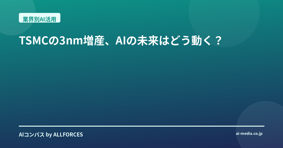 いやぁ、ついにこの時が来たか、という感じですね。TSMCが3nmプロセスを増産するというニュース、皆さんも耳にされたことでしょう。AI業界を20年近く見続けてきた私としては、正直「やっぱりな」という思いと、同時に「これからが本番だな」という期待感が入り混じっています。皆さんは、このニュースを聞いて、どんなことを感じましたか?