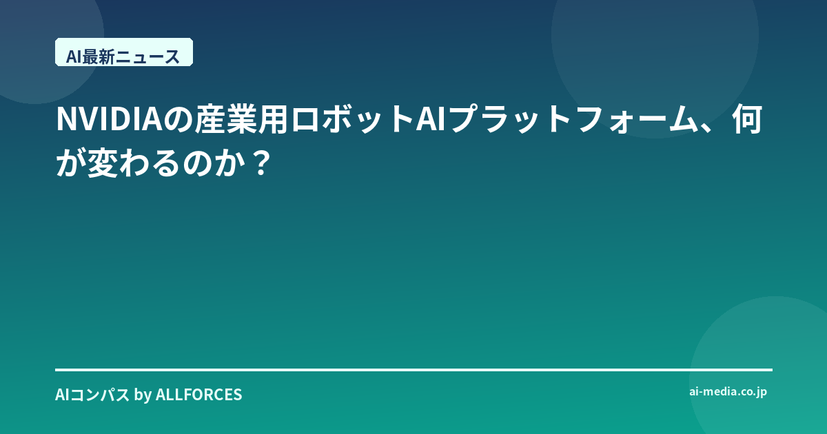 いやー、NVIDIAからまた面白い話が出てきましたね。産業用ロボット向けのAIプラットフォームを発表したってニュース、あなたも目にしたかもしれません。正直、初めにこのニュースを聞いた時、「またNVIDIAか」というのが正直な感想でした。だって、彼ら、いつも新しい分野に果敢に挑戦し、そしてしばしばその分野の風景を一変させてしまうでしょう? AIチップで始まり、データセンター、自動運転、そして今度は産業用ロボット。彼らの足跡は、まるでテクノロジーの進化の地図そのもののようです。