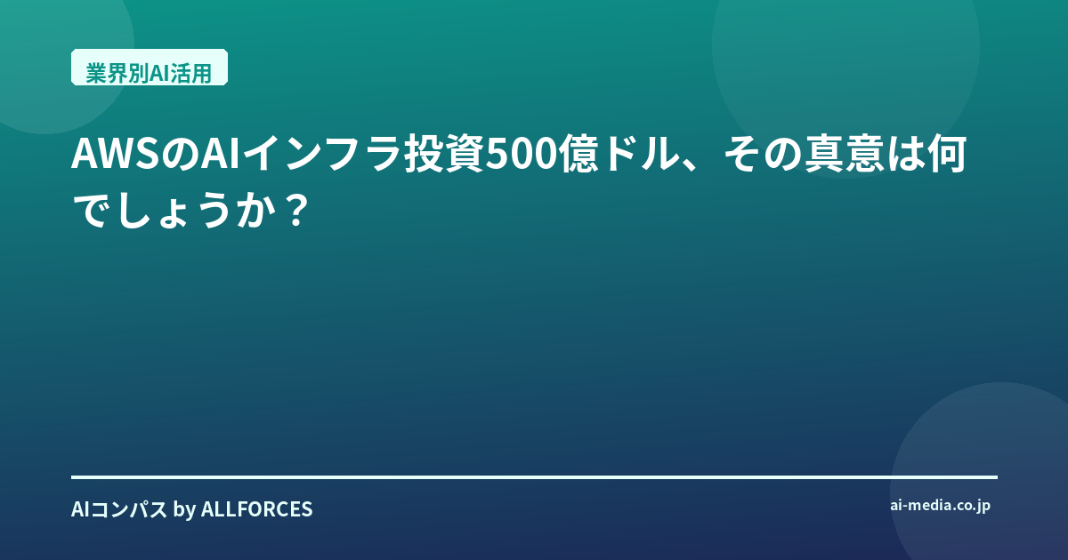 AWSのAIインフラ投資500億ドル、その真意は何でしょうか?