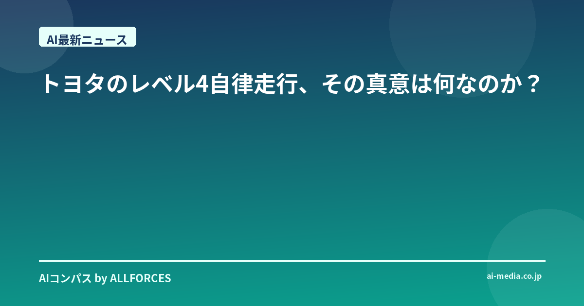 「トヨタが自律走行AIでレベル4を達成した」――このニュース、あなたも耳にしましたよね。正直なところ、最初は「またか」とも思いました。AI業界を20年近く見てきていると、こうした「ブレークスルー」のニュースは、期待先行で実態が伴わないことも少なくなかったんです。シリコンバレーのピカピカのスタートアップが壮大なビジョンを掲げて発表するものの、蓋を開けてみれば技術的な壁にぶつかり、あるいはビジネスモデルが描けずに消えていく。そんな光景を数えきれないほど見てきました。だからこそ、今回のトヨタの発表も、まずは冷静に、そして少し懐疑的に、その本質を見極めようと思ったわけです。