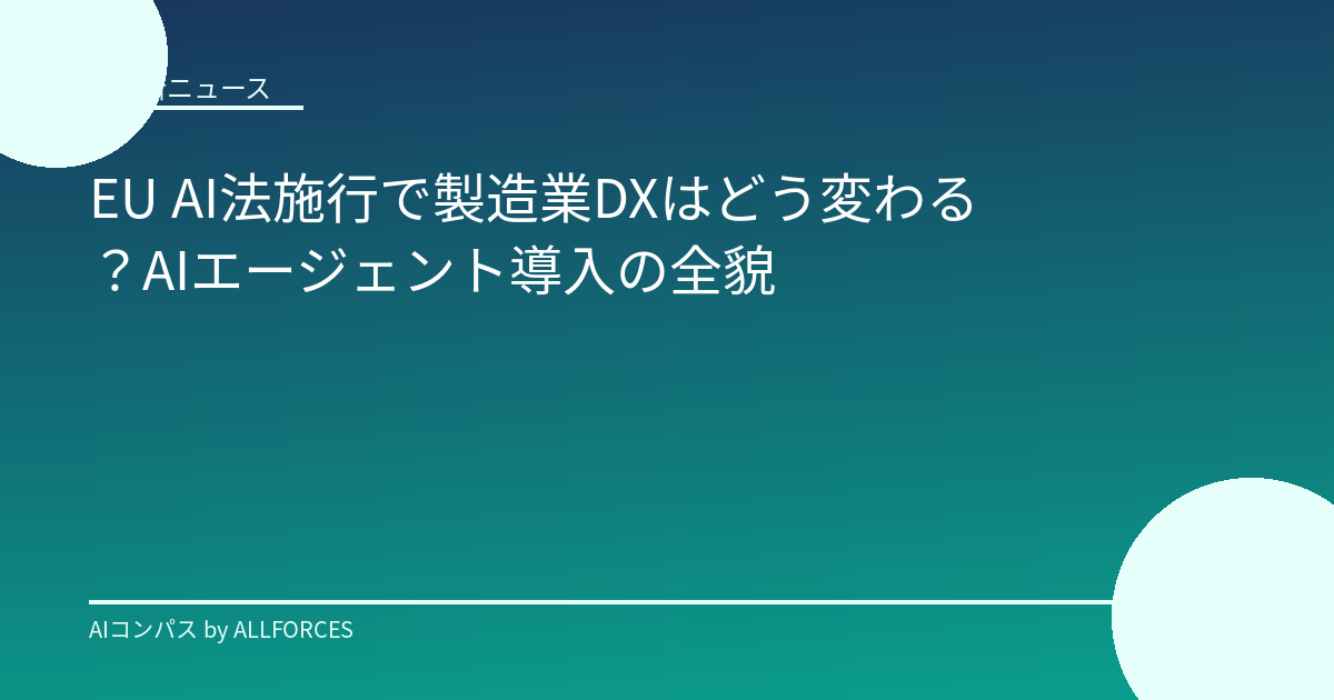 EU AI法施行が迫る製造業DX:AIエージェント導入がもたらす変革とコンプライアンスの羅針盤