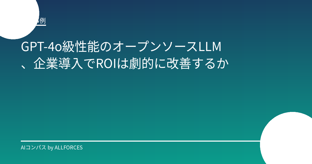 この問いに対する答えは、企業ごとに異なります。しかし、オープンソースLLMという強力な選択肢が加わった今、AI導入はかつてないほど身近なものになっています。