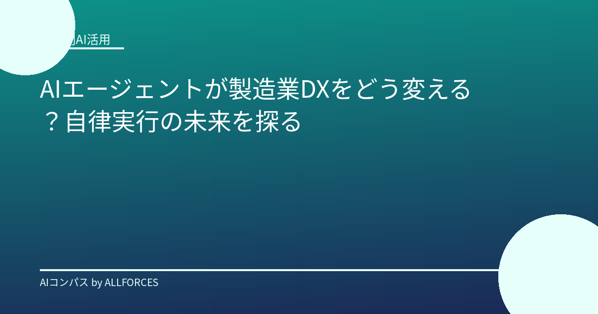 製造業DXの隠れた主役:AIエージェントが拓く自律実行の未来