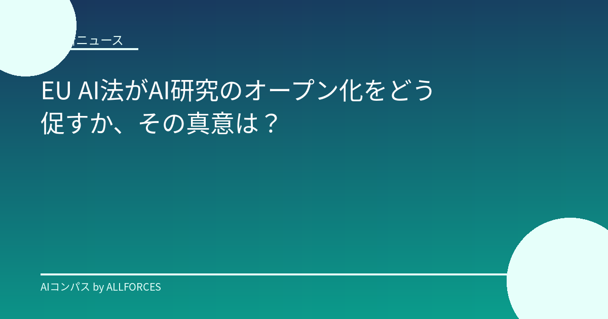 EU AI法は、AI研究の「オープン化」を促す触媒となるのでしょうか。それとも、厳格な規制がイノベーションの芽を摘んでしまうのでしょうか。