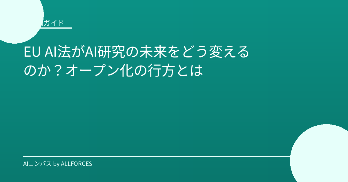 AI研究の進歩は目覚ましいものがありますが、その一方で、EU AI法のような規制の動きも活発化しています。今回は、AI研究者や開発者にとって、EU AI法がAI研究のオープン化と規制にどのような影響を与えるのか、私の経験も交えながら解説していきます。