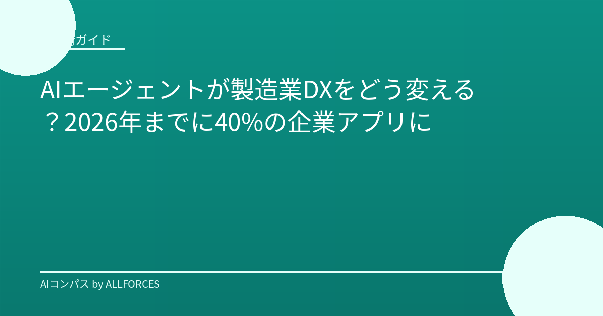 AIエージェントが製造業のDXをどう変えるか? 2026年、企業アプリの40%に搭載される可能性のあるAIエージェントは、製造現場にどのような変化をもたらすのでしょうか。AI実装プロジェクトの経験から、その可能性と実装のポイントを分かりやすく解説します。