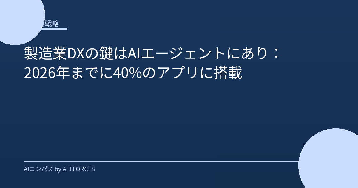 製造業の現場で、あなたは日々変化する市場の要求に応え、生産性向上やコスト削減のプレッシャーに直面していることでしょう。そんな中、AI、特に「AIエージェント」の台頭は、これまでのDX(デジタルトランスフォーメーション)のあり方を大きく変えようとしています。Gartnerの予測によれば、2026年には企業アプリケーションの40%にAIエージェントが搭載される見込みです。これは、単なる技術トレンドに留まらず、ビジネス戦略の核となる可能性を秘めていることを意味します。