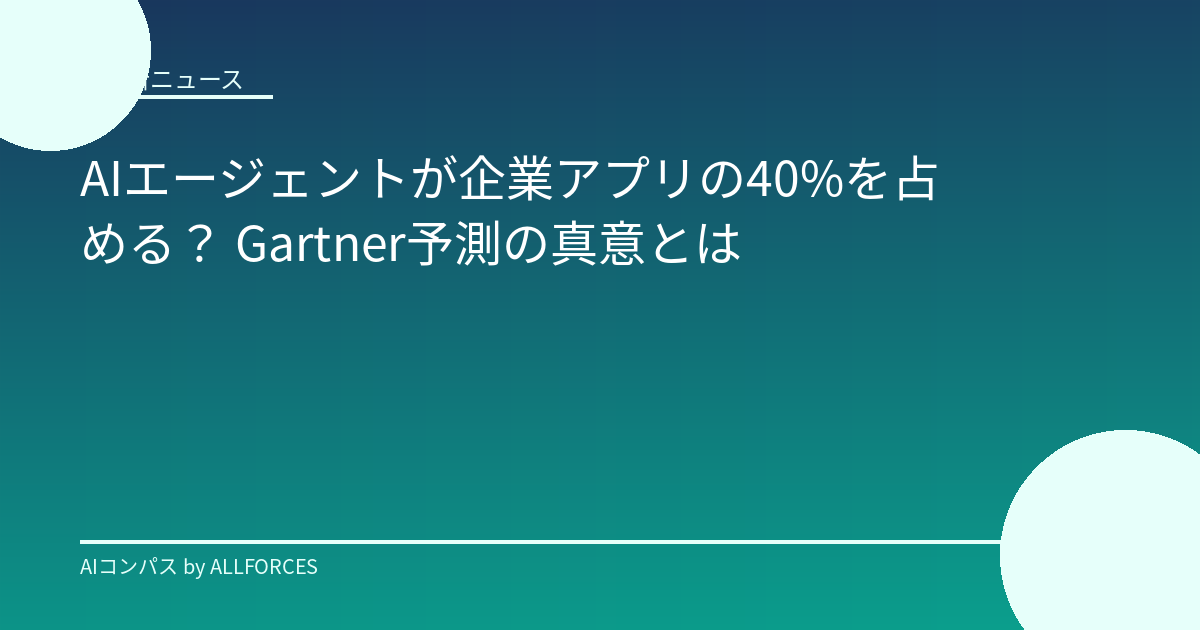 AIエージェント、企業アプリへの浸透は40%超えか? Gartner予測が示唆する未来と、現場のリアル