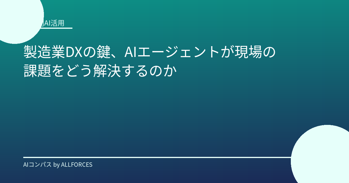製造業DXを加速するAIエージェント:現場の課題を解決し、未来を拓く