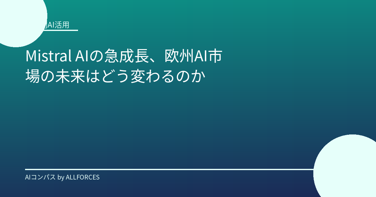 AI市場全体は、2025年の2440億ドルから、2030年には8270億ドルへと、CAGR 28%で成長すると予測されています。特に、生成AI市場は2025年時点で710億ドルに達し、前年比55%増と急速に拡大しています。また、AIエージェント市場もCAGR 46%と高い成長率が見込まれています。 このような成長市場において、Mistral AIは欧州AIエコシステムを牽引する存在となる可能性を秘めています。彼らのオープンソース戦略は、欧州全体のAI技術力の底上げに貢献するでしょう。また、EU AI Actのような規制への早期対応は、信頼性の高いAIソリューションを提供できるという強みにもなり得ます。 私自身、AI技術の進化を日々追う中で、その可能性にワクワクする一方で、その普及に伴う倫理的・社会的な課題についても深く考えています。Mistral AIのような企業が、技術革新と責任あるAI開発のバランスをどのように取っていくのか、その動向は欧州だけでなく、世界のAI開発のあり方にも影響を与えるはずです。