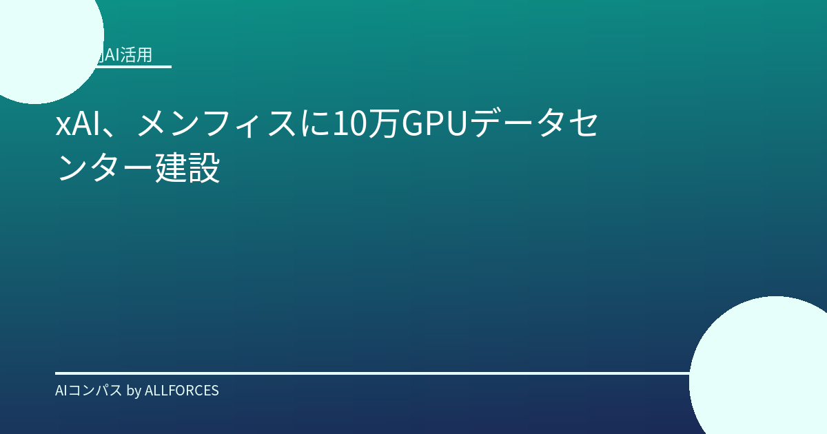 近年、AI技術の進化は目覚ましいものがありますが、その裏側では膨大な計算能力を支えるインフラへの投資が激化しています。特に、Elon Musk氏率いるxAIがメンフィスに建設を計画している10万GPU規模のデータセンターは、AIインフラの未来、ひいては様々な産業にどのような影響を与えるのでしょうか。今回は、この巨大プロジェクトを紐解きながら、AI活用が直面する現実と可能性を探っていきます。