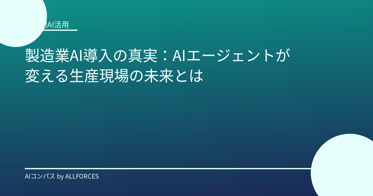こうした課題に対し、AI技術は具体的な解決策を提供し始めています。特に、AIエージェントとマルチモーダルAIは、製造業の現場に大きな変革をもたらす可能性を秘めています。