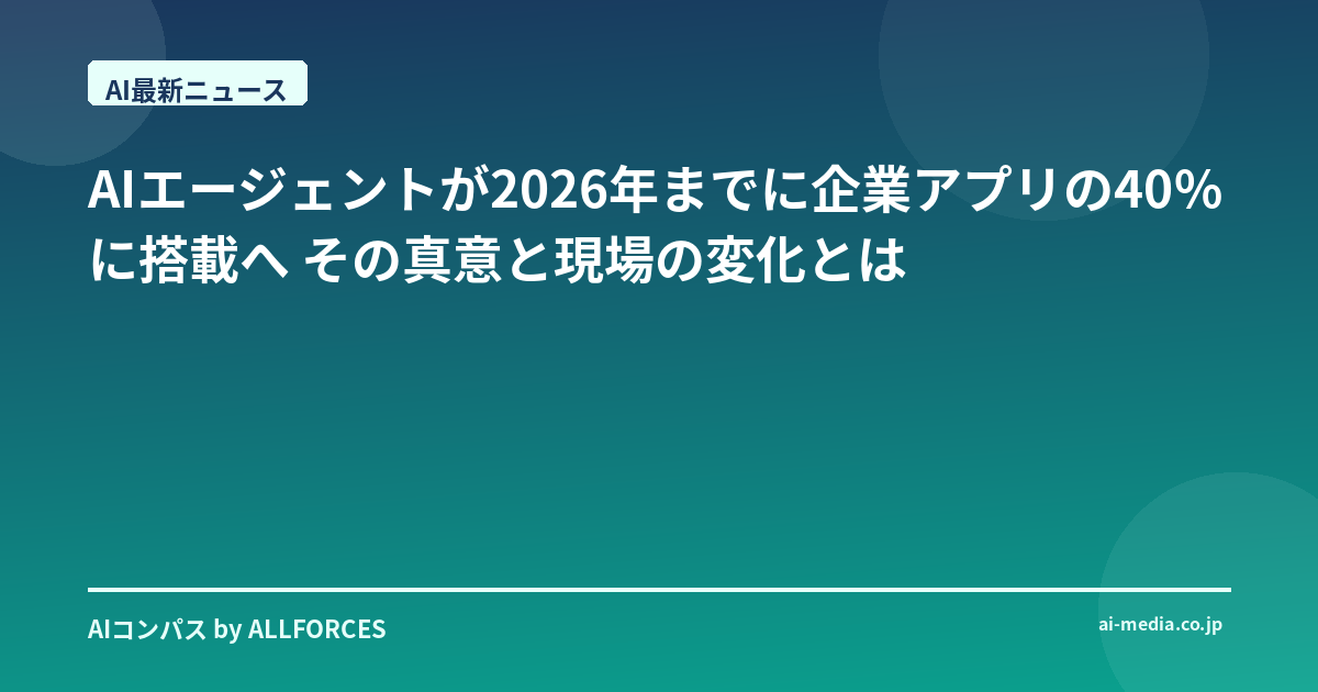 「AIエージェントが2026年までに企業アプリの40%に搭載される」――Gartnerのこの予測を聞いて、皆さんはどんな未来を思い描くでしょうか?私自身、AI開発の現場で日々進化を肌で感じている身としては、これは単なる数字ではなく、ビジネスのあり方を根本から変える可能性を秘めたシグナルだと捉えています。