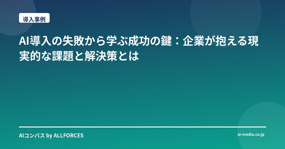 AI導入は「失敗」から学ぶ? 成功を掴むためのリアルな視点 「AIを導入したいけれど、何から手をつければいいかわからない」「成功事例は聞くけれど、うちの会社で本当にうまくいくのだろうか?」 そんな不安を抱える経営層やエンジニアの方々も多いのではないでしょうか。私自身、多くの企業のAI導入プロジェクトに携わる中で、華々しい成功の裏側にある苦労や、惜しくも目標を達成できなかったケースを数多く見てきました。今回は、そうした実務経験から見えてきた、AI導入における「成功の鍵」と「失敗の落とし穴」について、リアルな視点でお話ししたいと思います。 ### 1. 導入企業の課題:理想と現実のギャップをどう埋めるか AI導入を検討する企業が抱える課題は、大きく分けて2つあると感じています。一つは、AIに対する過度な期待、もう一つは、現状の業務プロセスへの過信です。 例えば、ある製造業のA社では、「AIを導入すれば、熟練工のノウハウがなくても、誰でも同じ品質の製品が作れるようになるはずだ」という期待がありました。しかし、現場の作業は長年の経験に裏打ちされた暗黙知の塊であり、それをそのままAIに学習させようとしても、想定通りの精度が出なかったのです。AIはデータに基づいて学習しますが、現場の職人たちの「勘」や「コツ」といった、言語化されていない要素をAIが理解するのは容易ではありませんでした。 また、別のIT企業のB社では、「既存のCRMシステムにAIを組み込めば、顧客対応が劇的に改善するはずだ」と考えていました。しかし、CRMに蓄積されていたデータは、担当者ごとの自由記述が多く、フォーマットもバラバラ。AIが分析できるような、構造化されたデータがほとんどなかったのです。結果として、AIは「学習データが足りない」という理由で、期待されたほどの効果を発揮できませんでした。 これらのケースに共通するのは、AIができること・できないことの理解不足と、現状の業務プロセスやデータ活用の現状への甘い見立てです。AIは魔法の杖ではありません。現実の課題をAIでどう解決できるのか、そしてそのために何が必要なのかを、地に足をつけて考えることが重要です。 ### 2. 選定したAIソリューション:目的と手段のすり合わせ 「とりあえず最新のAIツールを導入してみよう」という考え方で、うまくいくことは稀です。AIソリューションの選定においては、まず「何を解決したいのか」という目的を明確にし、それに合致する技術やツールを選ぶ必要があります。 例えば、近年急速に進化している生成AI。GPT-4oのような汎用的なLLMは、文章作成、プログラミング、アイデア出しなど、様々な用途に活用できます。しかし、特定の業務に特化した効率化を目指すのであれば、より専門的なAIツールが適している場合もあります。 私が以前関わった、あるECサイト運営企業C社では、顧客からの問い合わせ対応の効率化が課題でした。そこで、汎用LLMを導入してチャットボットを開発したのですが、想定以上に複雑な質問が多く、回答精度に限界がありました。そこで次に検討したのが、過去の問い合わせ履歴やFAQデータを学習させた、より特化したAIチャットボットソリューションでした。結果として、こちらの方が遥かに高い精度で顧客の疑問を解消できるようになり、サポート部門の負担も大幅に軽減されました。 このように、AIソリューションの選定は、「目的」→「課題」→「必要な機能」→「最適なAI技術・ツール」というステップで進めるのが王道です。競合他社が使っているから、話題だから、といった理由だけで選ぶのは危険です。 ### 3. 実装プロセス:現場との「二人三脚」が不可欠 AI導入プロジェクトで最も苦労するのが、この実装フェーズかもしれません。技術的なハードルはもちろんですが、それ以上に、現場の担当者とのコミュニケーションが鍵となります。 あるSaaS企業D社では、開発チームが中心となってAI機能を開発し、その後、営業担当者に「この新しいAI機能を使って顧客提案をしてほしい」と依頼しました。しかし、営業担当者はAIの仕組みを十分に理解しておらず、顧客にどう説明すれば良いのか、また、AIが生成した回答のどこを信じて良いのか判断がつかず、結局、積極的な活用には至りませんでした。 「AIはエンジニアのもの」という考え方が根底にあると、現場への浸透は難しくなります。AI導入を成功させるためには、開発段階から現場の担当者に巻き込み、彼らの意見を聞きながら進めることが不可欠です。例えば、UI/UXの改善、AIからの回答に対するフィードバック収集、そして、AI活用のためのトレーニングなど、「現場が使いこなせる」状態を目指すことが重要です。 私自身、AIモデルの精度向上はもちろんですが、それ以上に、ユーザーインターフェースの使いやすさや、AIからの説明の分かりやすさといった点に注力してきました。なぜなら、どんなに優れたAIも、現場で使われなければ意味がないか