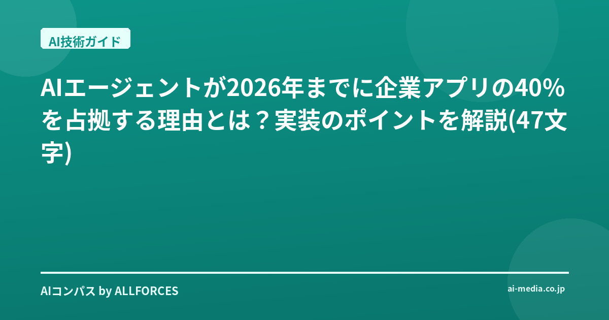 - AIエージェントが2026年までに企業アプリの40%を占拠する理由とは?導入ロードマップも解説