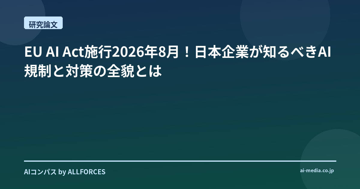 - EU AI Act施行迫る、日本企業は2026年までにコンプライアンスとビジネス機会を