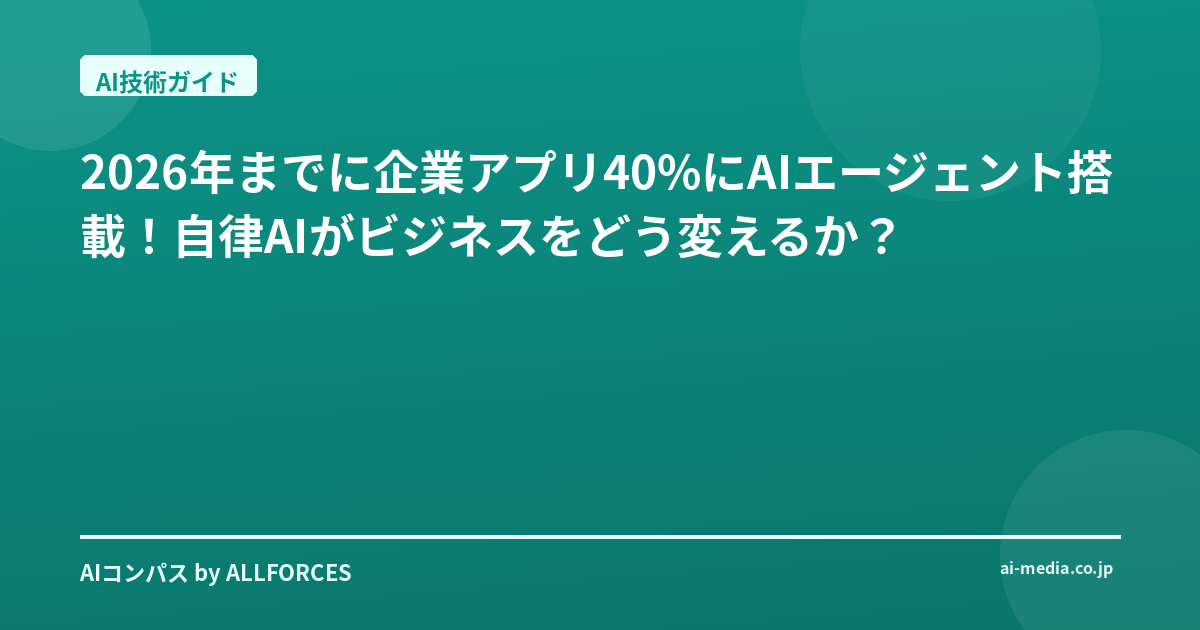 - AIエージェントが2026年までに企業アプリの40%を占拠する理由とは?実装のポイントを解説