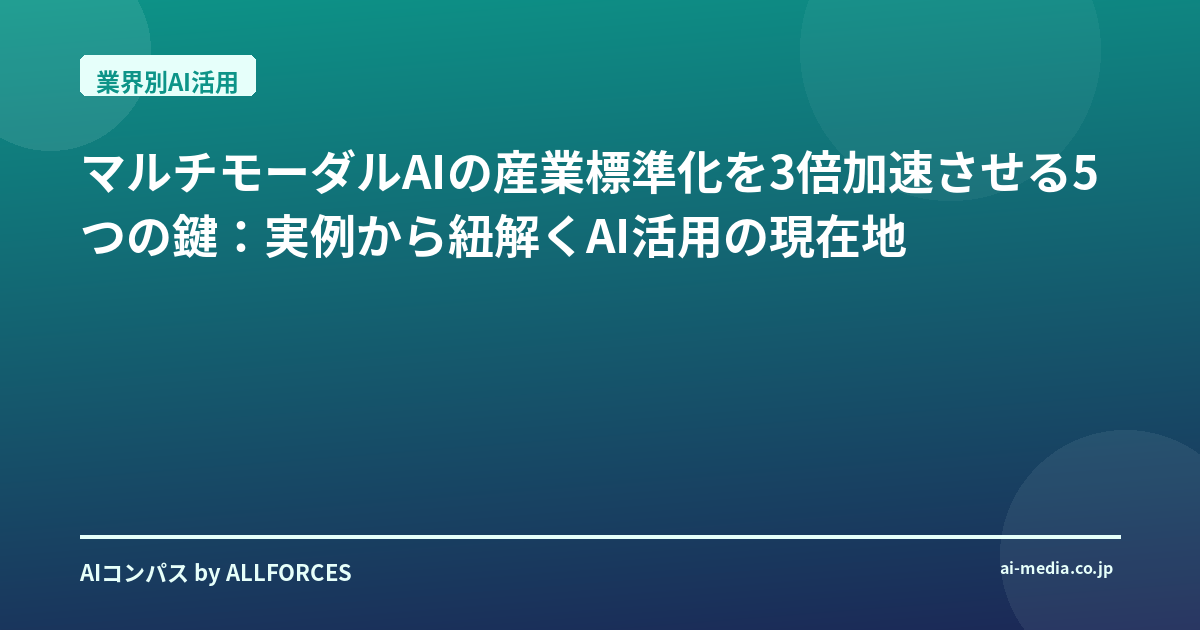 皆さん、こんにちは。AIの進化は目覚ましいものがありますが、特にマルチモーダルAIの進化は、私たちのビジネスや生活にどのような変化をもたらすのか、具体的なイメージが湧きにくいと感じている方もいらっしゃるのではないでしょうか。私も様々な業界のAI導入を取材する中で、まさにその「現実的な可能性」を模索してきました。今日は、その経験から、マルチモーダルAIが各産業でどのように活用され、標準化への道を歩み始めているのか、そしてその導入に際して直面する課題と、それをどう乗り越えていくべきかをお話ししたいと思います。
