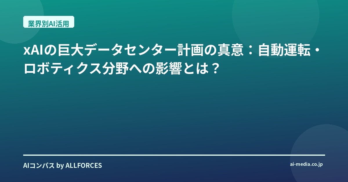 xAIの巨大データセンター計画:自動運転・ロボティクス分野への影響とAI活用の未来