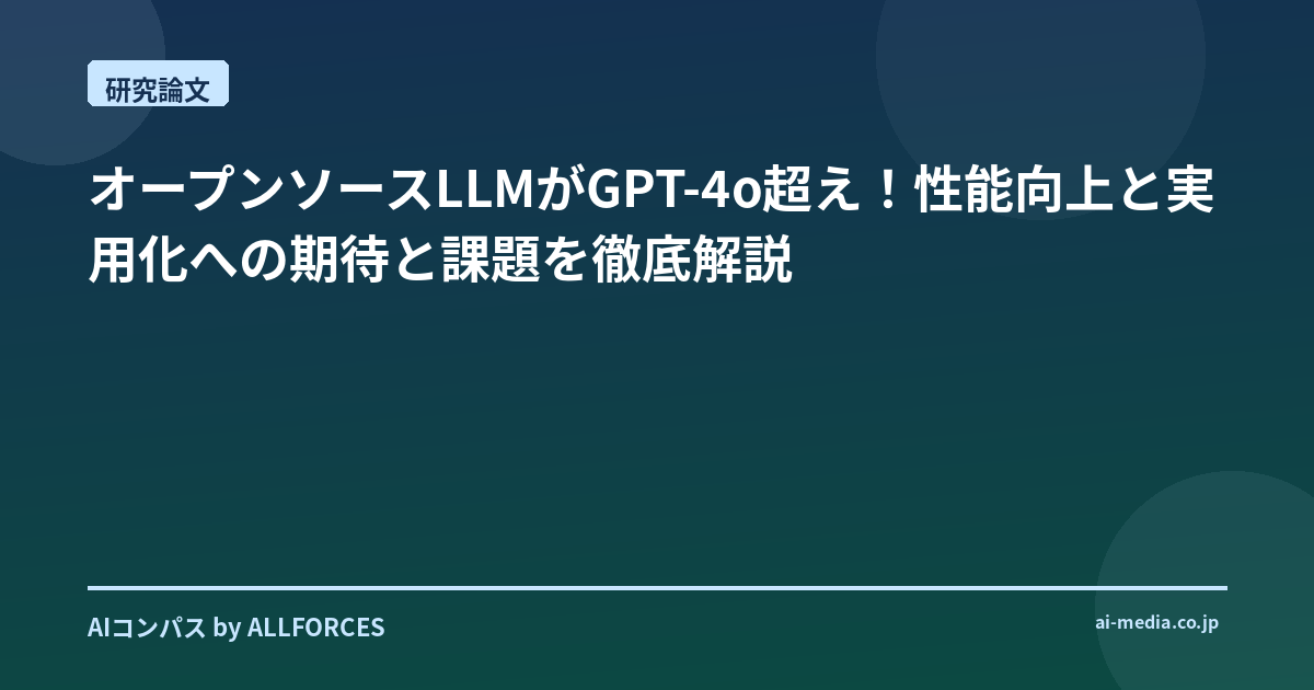 AI研究開発の現場に身を置いていると、日々驚くべき進化を目の当たりにします。特に、近年目覚ましい発展を遂げているのが大規模言語モデル(LLM)の世界です。ChatGPTやClaudeといった商用モデルがその性能を競い合う一方で、オープンソースLLMの進化もまた、目を見張るものがあります。今回は、最新の研究動向を踏まえ、オープンソースLLMの「GPT-4o超え」とも言える可能性と、それがもたらす実用化への道筋、そして我々が直面するであろう課題について、現場の視点から掘り下げていきたいと思います。
