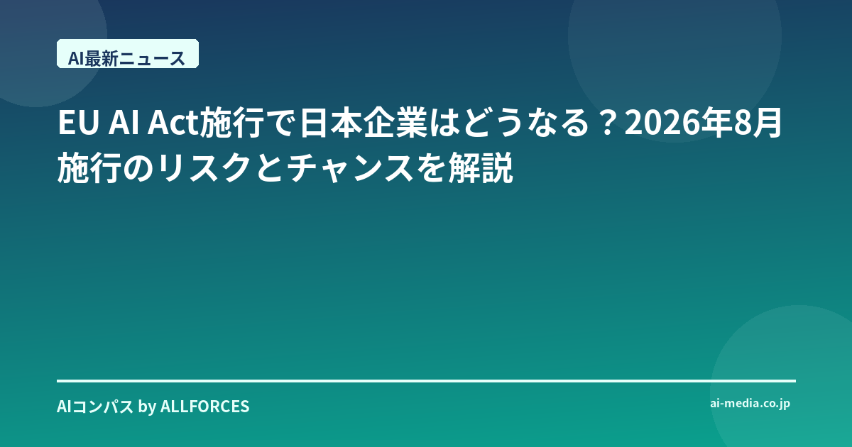- EU AI Act施行迫る、日本企業は2026年までにコンプライアンスとビジネス機会を