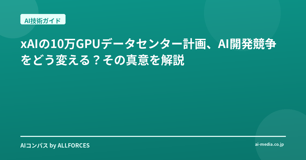xAIの10万GPUデータセンター計画:AI開発競争の新たな地平を探る 皆さん、AI技術の進化には目覚ましいものがありますが、その裏側でインフラへの巨額投資が静かに、しかし確実に進んでいるのをご存知でしょうか。特に、イーロン・マスク氏が率いるxAIが計画している10万GPU規模のデータセンター建設は、AI開発競争の様相を一変させる可能性を秘めています。今回は、AI実装プロジェクトの経験を踏まえ、この壮大な計画がなぜ重要なのか、そしてそれが私たちのビジネスにどう影響するのかを、実務者の視点から分かりやすく解説していきます。 ### 1. 技術の概要と背景:なぜ今、これほど大規模なインフラが必要なのか? AI、特に深層学習モデルの性能向上には、膨大な計算能力が不可欠です。モデルが大規模化し、学習データ量が増加するにつれて、その計算要求は指数関数的に増大しています。NVIDIAの最新GPUであるB200(Blackwell)がFP16で2250TFLOPSという驚異的な性能を発揮するように、ハードウェアの進化は目覚ましいものがありますが、この性能を最大限に引き出すためには、それを支えるインフラ、すなわちデータセンターの規模と効率が極めて重要になります。 xAIの計画は、まさにこの計算能力のボトルネックを解消し、最先端のAIモデル開発を加速させるためのものです。2025年時点でのAI市場規模は2440億ドル(約36兆円)に達すると予測されており、生成AI市場だけでも710億ドル(約10.6兆円) を占めることを考えると、この巨大な市場をリードするためには、他社を凌駕する開発基盤が不可欠となるのです。GoogleやMicrosoft、Amazonといったハイパースケーラーが2026年までにAI関連の設備投資に合計6900億ドルを費やす見込み であることからも、インフラ投資がAI競争における最重要戦略の1つであることが伺えます。 私が以前、大規模な画像認識モデルの学習に取り組んだ際、GPUリソースの確保がいかに困難であったかを痛感しました。限られたリソースで試行錯誤を繰り返す中で、学習時間の短縮やモデル精度の向上が、いかにインフラの性能に依存しているかを肌で感じたのです。xAIの計画は、こうしたリソースの制約から開発者を解放し、より大胆な研究開発を可能にするための、まさに「ゲームチェンジャー」となり得るでしょう。 ### 2. アーキテクチャ詳細:10万GPUをどう繋ぎ、どう動かすのか? 10万基ものGPUを効率的に稼働させるためには、単に数を揃えるだけでなく、高度なネットワーク設計と管理システムが不可欠です。GPU間を高速にデータがやり取りできる、低遅延・高帯域幅のネットワークインフラが求められます。NVIDIAのInfiniBandのような高速インターコネクト技術や、NVLinkのようなGPU間直接接続技術が、この規模のシステムでは鍵となります。 また、GPUの処理能力を最大限に引き出すためには、電力供給、冷却システム、そしてそれらを統合的に管理するソフトウェアスタックも重要です。例えば、NVIDIAのH100やH200、そして次世代のB200といった高性能GPUは、その処理能力に見合うだけの電力と、発生する膨大な熱を効率的に処理する高度な冷却技術を必要とします。xAIがメンフィスに建設を計画しているデータセンターの規模を考えると、これは単なるコンピューティングリソースの集積ではなく、1つの巨大な「AI工場」とも言えるでしょう。 私が以前、分散学習システムを構築した経験から言えるのは、GPU間の通信遅延が学習全体のパフォーマンスにどれほど大きな影響を与えるか、ということです。GPUの理論性能が高くても、ネットワークがボトルネックになれば、その性能は全く引き出せません。xAIがどのようなネットワークアーキテクチャを採用するのか、これは注目すべき点であり、彼らがどのようにこの課題をクリアするのかは、今後のAIインフラ構築における重要な事例となるはずです。 ### 3. 実装のポイント:xAIの計画から私たちが学べること xAIの計画は、単に「GPUをたくさん用意する」という話ではありません。そこには、AI開発のパラダイムシフトを狙う戦略が見て取れます。 * 大規模モデル開発の加速: Gemini 3 ProがLLMベンチマークで総合1位を獲得 するなど、モデルの性能競争は激化しています。xAIは、この競争で優位に立つため、より大規模で高性能なモデルの開発を目指していると考えられます。10万GPUという規模は、それを実現するための強力な武器となるでしょう。 * 垂直統合への傾斜: NVIDIAがGPUだけでなく、CUDAのようなソフトウェア基盤まで提供しているように、AI開発においてはハードウェアとソフトウェアの緊密な連携が重要です。xAIが自社で大規模インフラを構築するということは、ハードウェアからソフトウェア、そしてAIモデル開発までを垂直統合し、最適化を図る狙いがあるのかもしれません。 * コスト効率の追求: 確かに初期投資は莫大ですが、長期的には自社でインフラを持つことで、クラウドサービスを利用するよりもコスト効率を高められる可能性があります。特に、MetaがLl