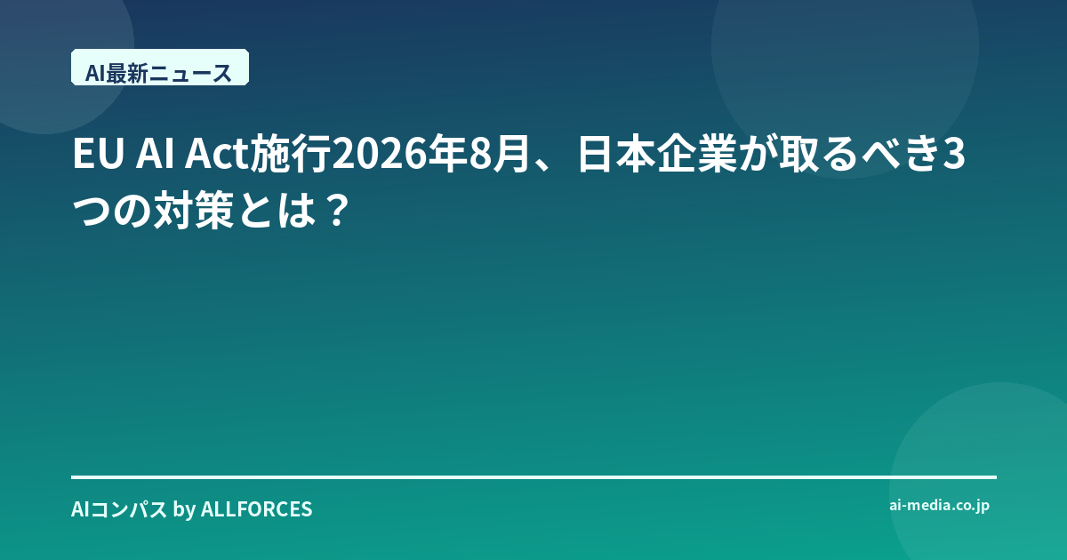 - EU AI Act完全施行は2026年8月!日本企業が知るべき影響とAI活用の現実解とは?