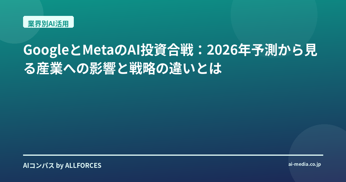 最近、AI業界の動向を追っていると、ハイパースケーラーによるAI設備投資の熱狂ぶりに目を見張るばかりです。特にGoogleとMetaの2社は、その投資規模と戦略において、AIの未来を形作る上で無視できない存在となっています。今回は、2026年のAI設備投資予測を基に、両社の戦略の違いが各産業にどのような影響を与えるのか、私の経験も交えながら掘り下げていきます。