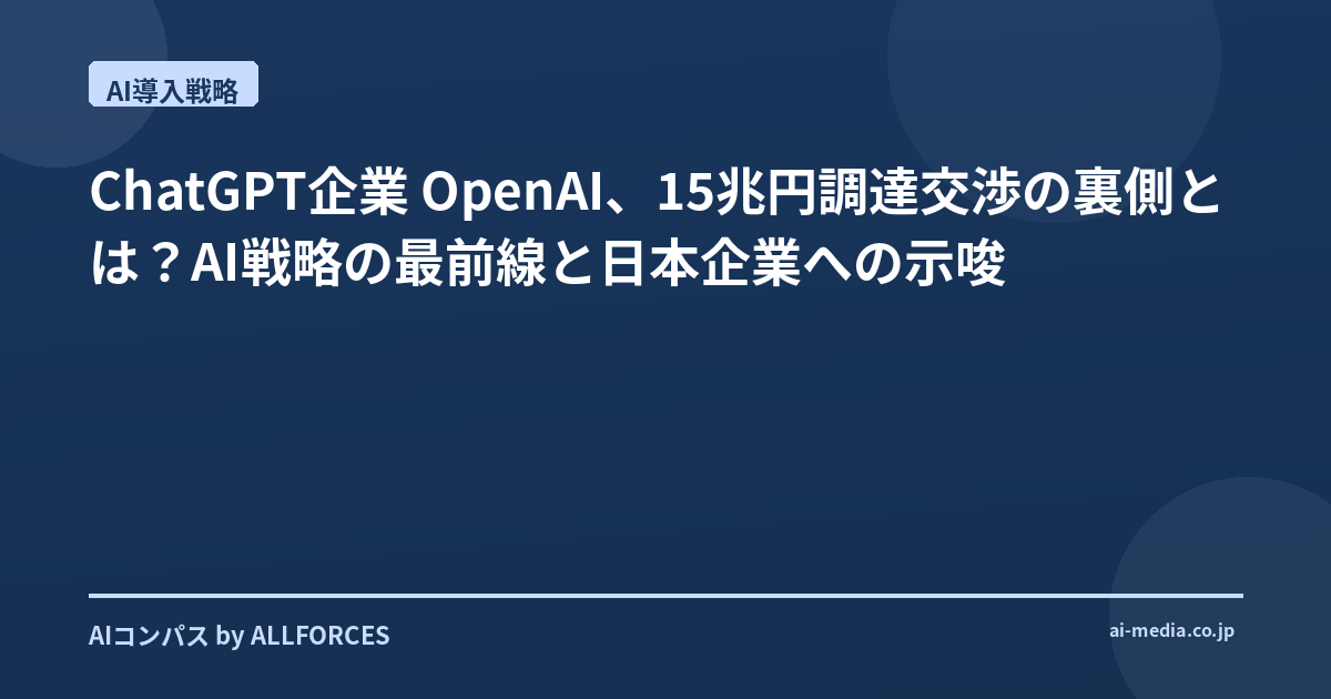 「AIで何ができるか」という技術的な側面だけでなく、「AIで何をしたいのか」というビジネス戦略的な側面を常に意識し、経営層と現場が一体となって、試行錯誤を繰り返していく姿勢が求められます。 某生成AI企業の巨額資金調達は、AIの進化が止まらないことを改めて示しています。この波に乗り遅れないためには、私たち一人ひとりが、AIとの向き合い方、そしてビジネスへの活かし方を、常にアップデートし続ける必要があります。 あなたも、自社のビジネスにおけるAIの可能性について、どのようなアイデアをお持ちでしょうか? そして、そのアイデアを実現するために、どのような一歩を踏み出そうとしていますか?